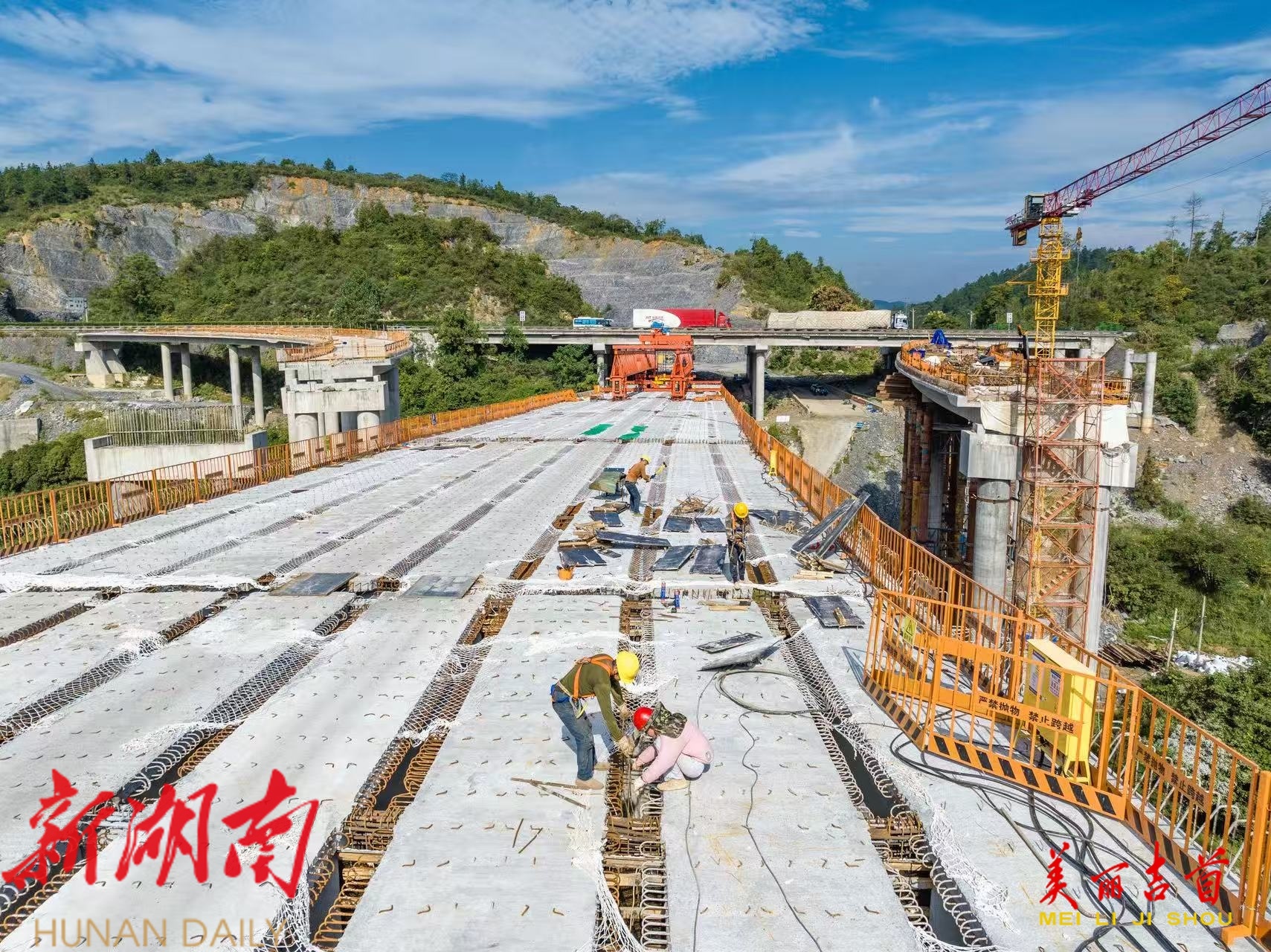 吉首市融媒体中心10月3日讯(全媒体记者 彭璟)2025年10月2日,吉首市吉怀高速金坪(联合)互通项目工地,建设者在施工作业。