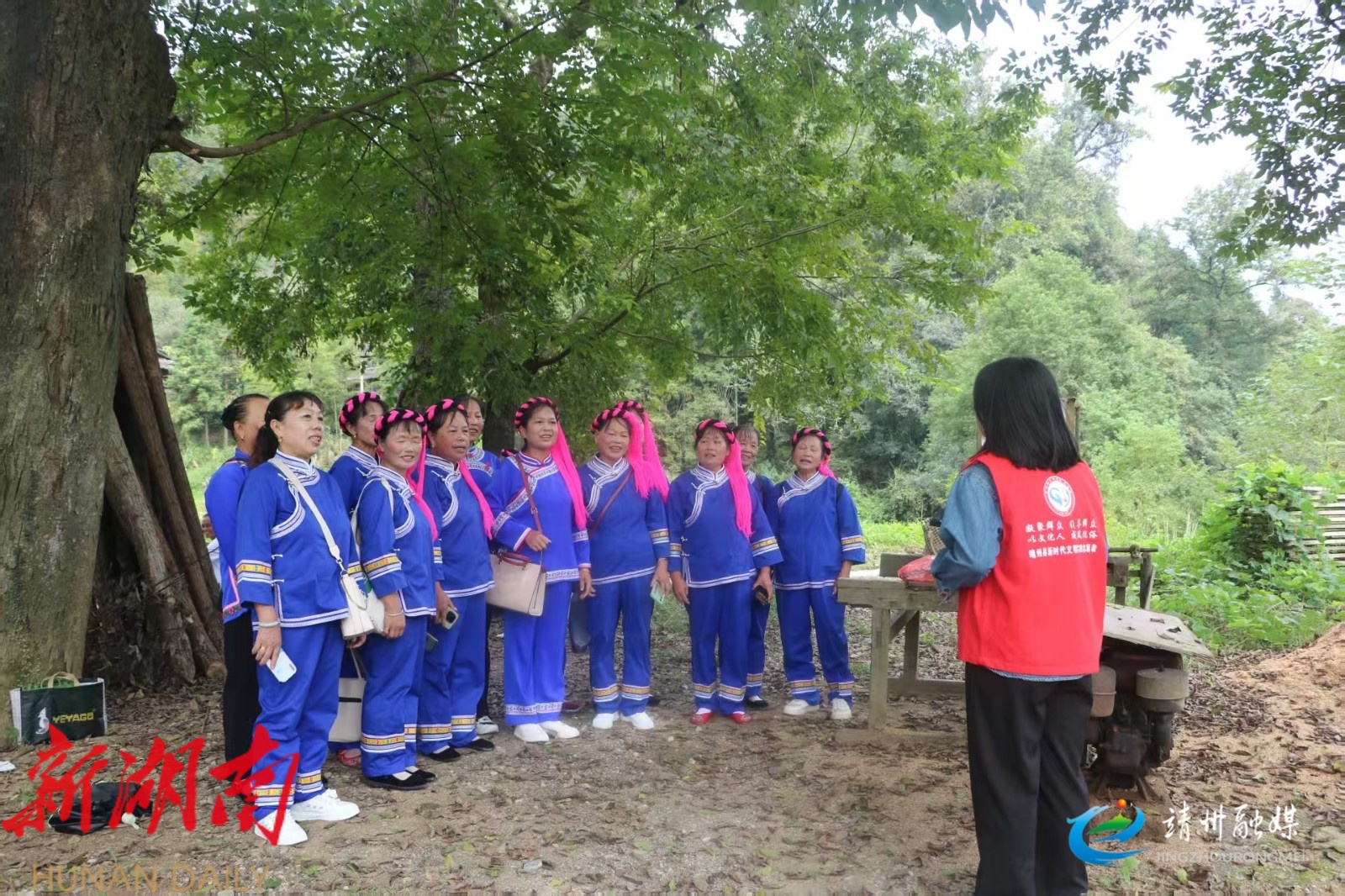 古树林立,塘水清浅。歌会上来自湘黔两地的各族群众悠然围坐,三三两两聚于塘子边、坡坎旁、古树下,对歌纳凉。宣讲团成员穿行其间,以原生态的苗歌、接地气的乡音,将“乡村振兴”“民族团结””基层治理”等政策要义娓娓道来。歌声起落间,政策理论如春风化雨,悄然浸润百姓心田。