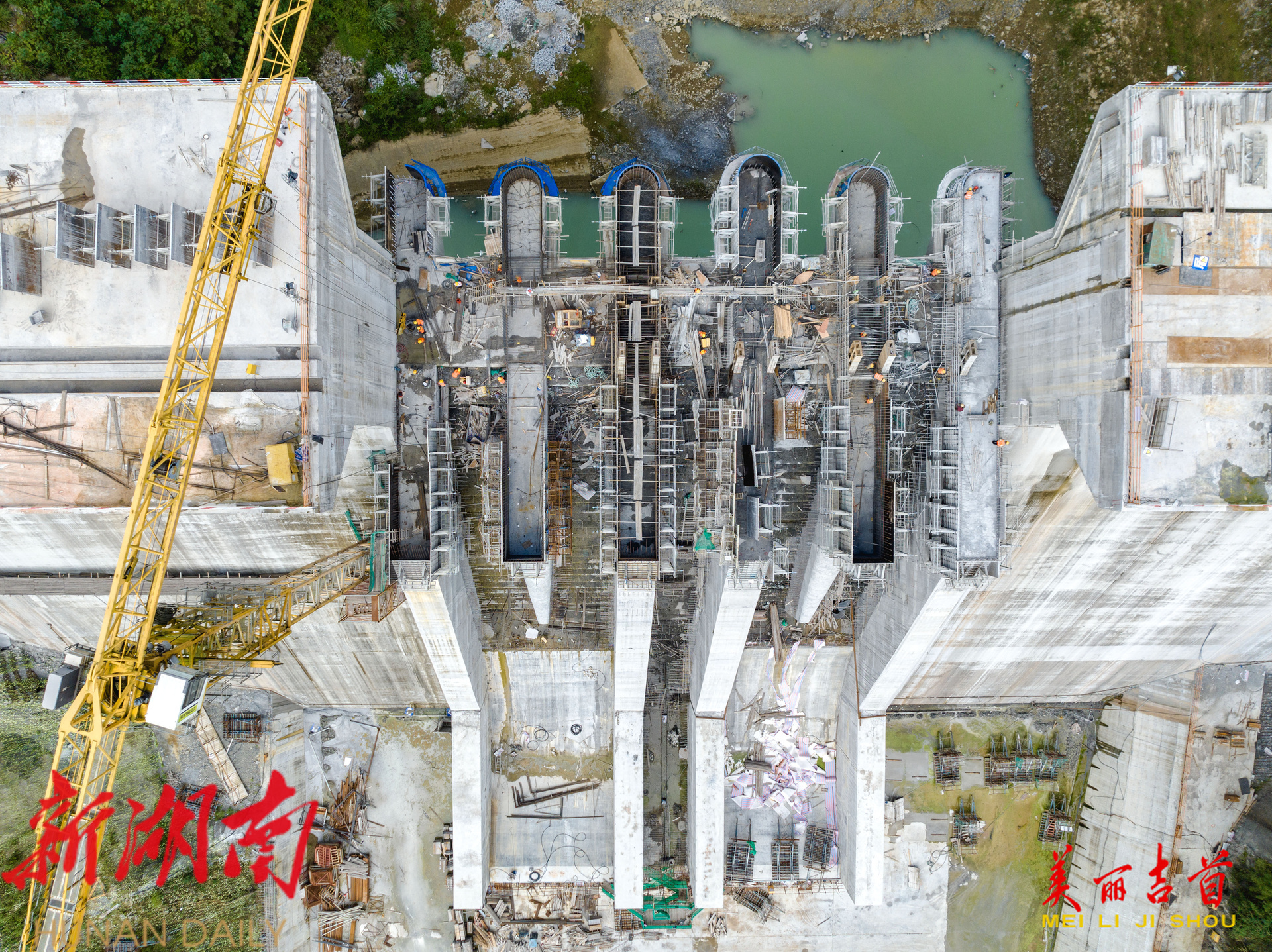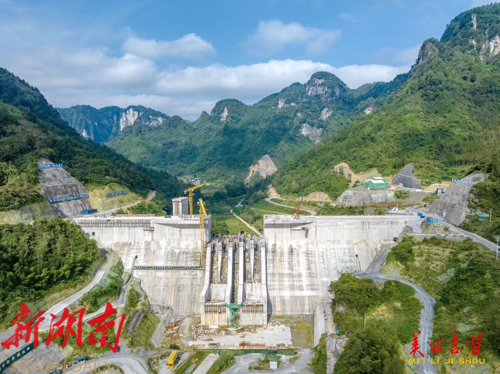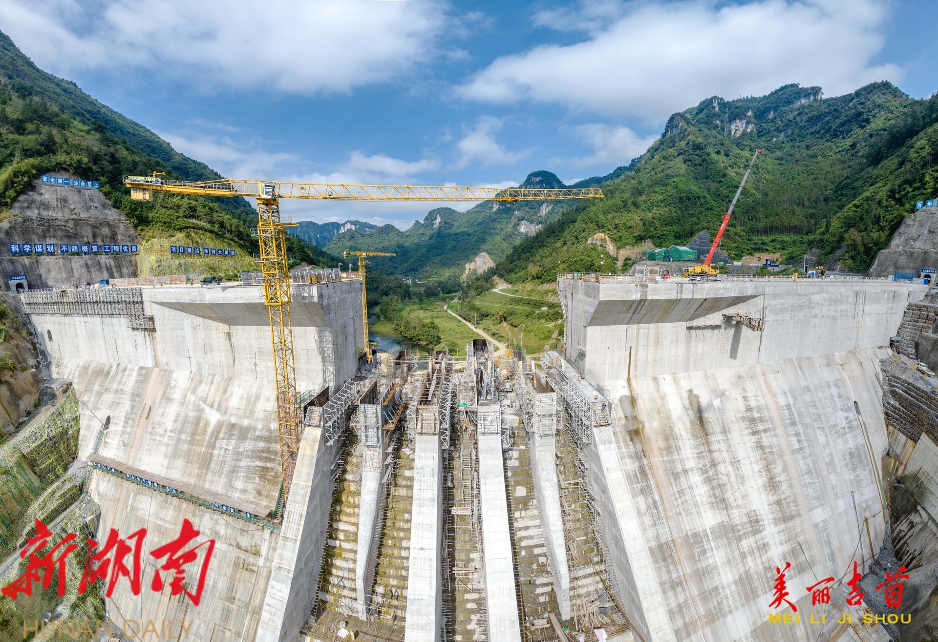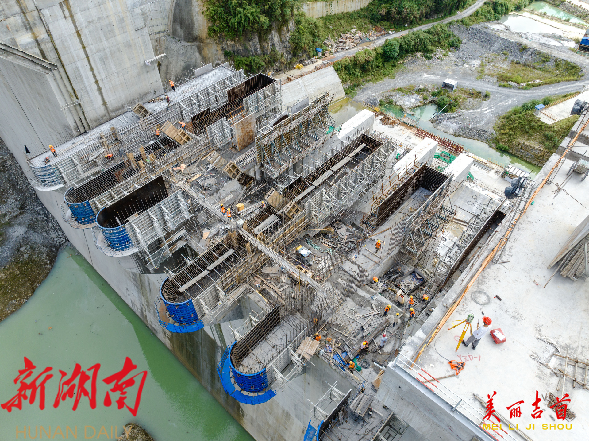 吉首市融媒体中心10月5日讯(全媒体记者 彭璟) 2025年10月4日,吉首市矮寨镇大兴寨水库工程建设现场,工人正在进行8#9#溢流坝段施工。国庆中秋假期,该建设单位的劳动者们放弃休假,坚守岗位,确保重点水利工程项目顺利推进。