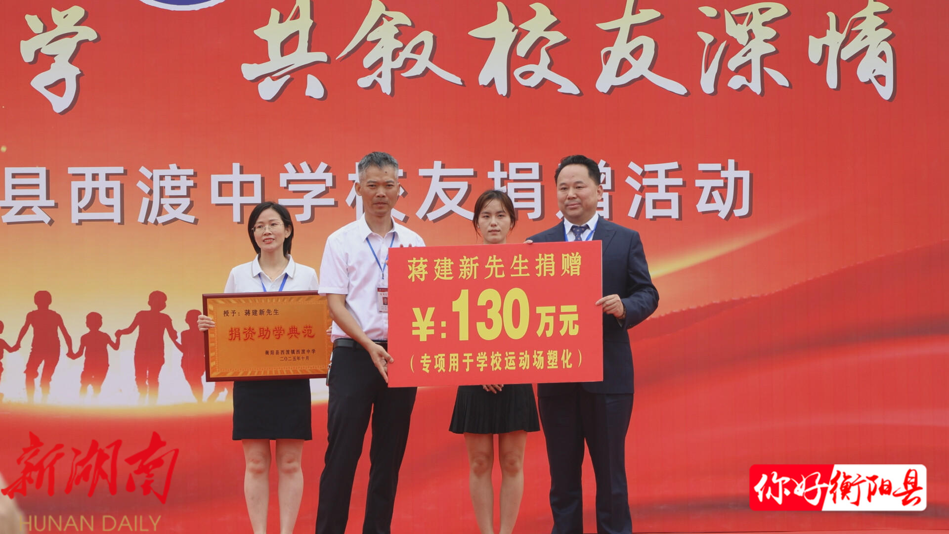 蒋建新是西渡中学原84班学生,经过多年打拼,已成为一名成功的企业家,但他依旧不忘师恩、心系教育。自2023年起,蒋建新已连续3年为母校捐资捐物,累计金额160余万元。在他的带动下,当天80多名校友自发捐赠20余万元现金和9万元物资,用于支持母校教育事业发展。