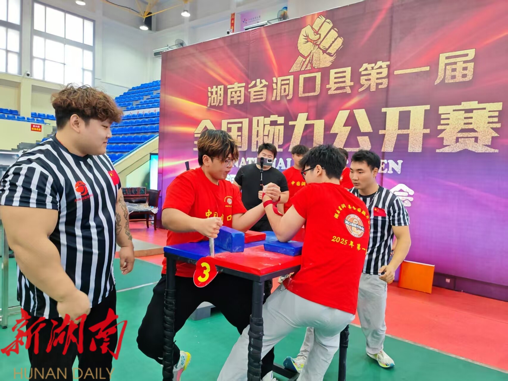 洞口融媒10月5日讯(记者:胡涛) 10月5日,洞口县首届“全国腕力公开赛”在县体育馆举行。来自全国15个省份的15支代表队齐聚一堂,将在为期一天的比赛中展开力量与技巧的巅峰对决。