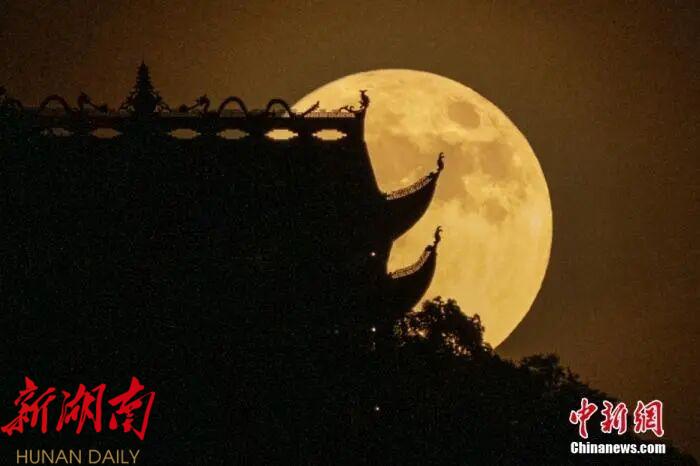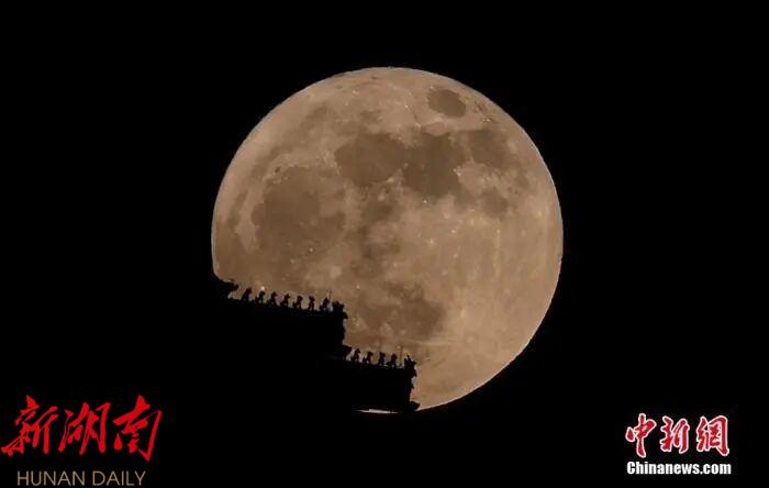 一轮“超级月亮”现身南京上空。中新社记者 泱波 摄