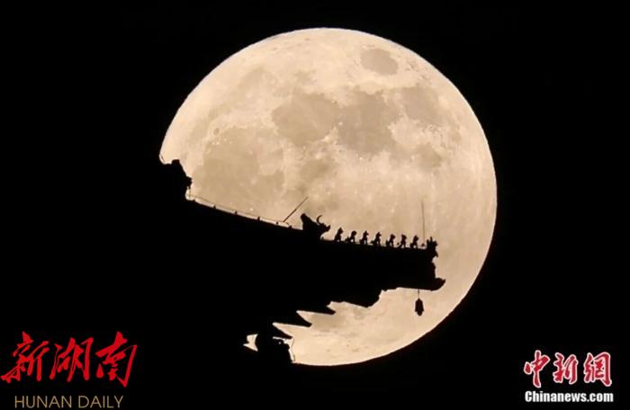 “超级月亮”从重庆老君洞上空缓缓升起。 (资料图)何蓬磊 摄
