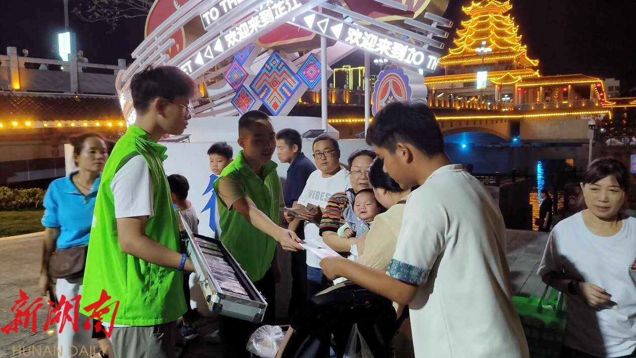 湖南日报·新湖南客户端10月6日讯(通讯员 杨丽君)“双节”同庆,文旅升温。10月5日晚,芷江飞虎风情街灯光璀璨、游人如织。由县禁毒办、县新时代文明实践中心、县禁毒协会联合开展的禁毒宣传活动在这里举行,为来自四面八方的游客送上了一份特殊的“平安守护礼”。