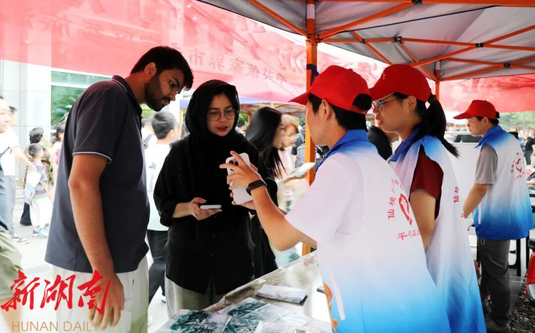 “Welcome to Zhangjiajie!”在天门山索道下站志愿服务点,青年志愿者龙华源热情地与来自巴基斯坦的游客们交流,并根据他们的想法,帮助他们买好了后天的景区门票,同时还向他们推荐了本地其他的景区景点,获得了游客的点赞。