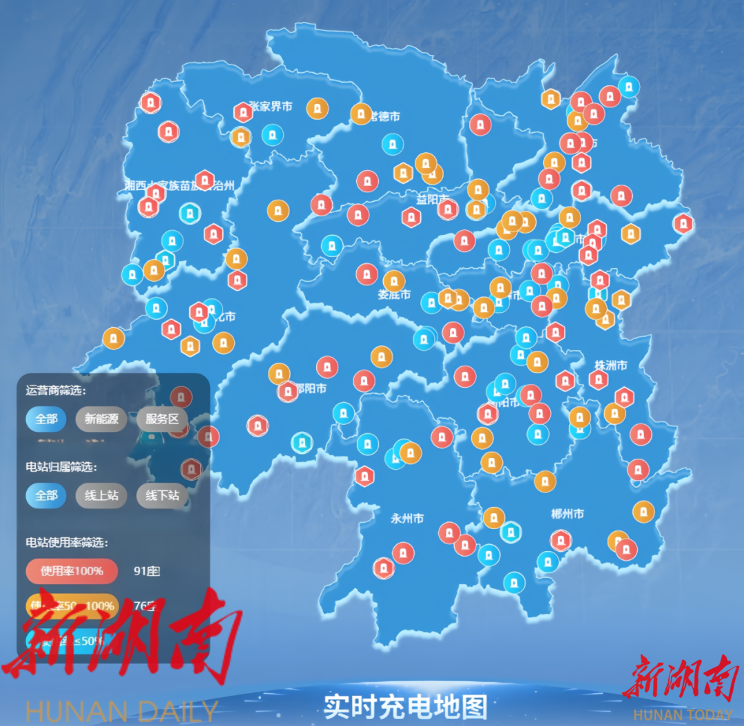 目前,在全省利用率排名前30的服务区60座充电站,湖南高速服务区公司增派运维人员,协同现场管理人员,提供24小时值守服务;同时在武深高速、长张高速、京港澳高速等大流量服务区增投移动充电设备应对突发需求。