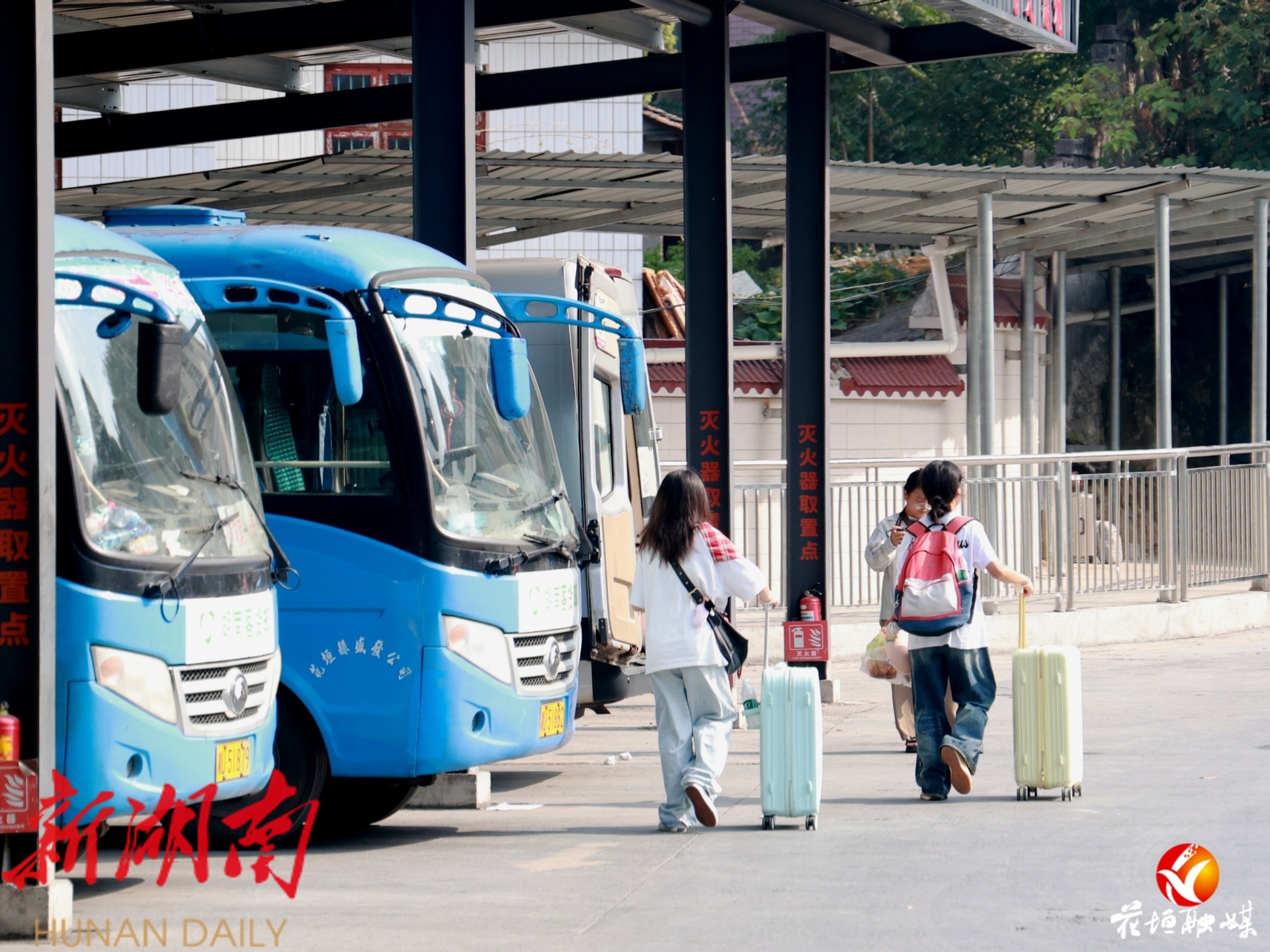 湖南日报·新湖南客户端10月8日讯(通讯员 邓雨露 梁金梅)10月8日,中秋国庆长假步入最后一天,花垣县城南汽车站内人头攒动,熙熙攘攘,迎来了旅客返程的最高峰。探亲流、务工流、学生流多重叠加,旅客们提着大包小包的行李,怀揣着对家的不舍和对工作的期待,从这里出发,奔赴各自学习、工作的城市。