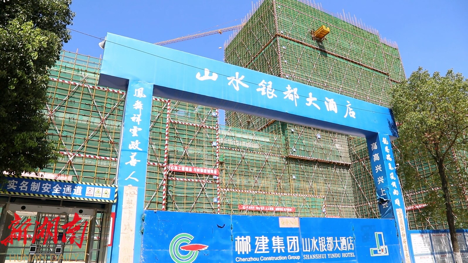郴州建设集团有限公司山水银都大酒店项目经理陈斌剑:“我们目前投入施工的人数在70到80人之间,后续根据不同的需要,还会陆陆续续地增加人员。”