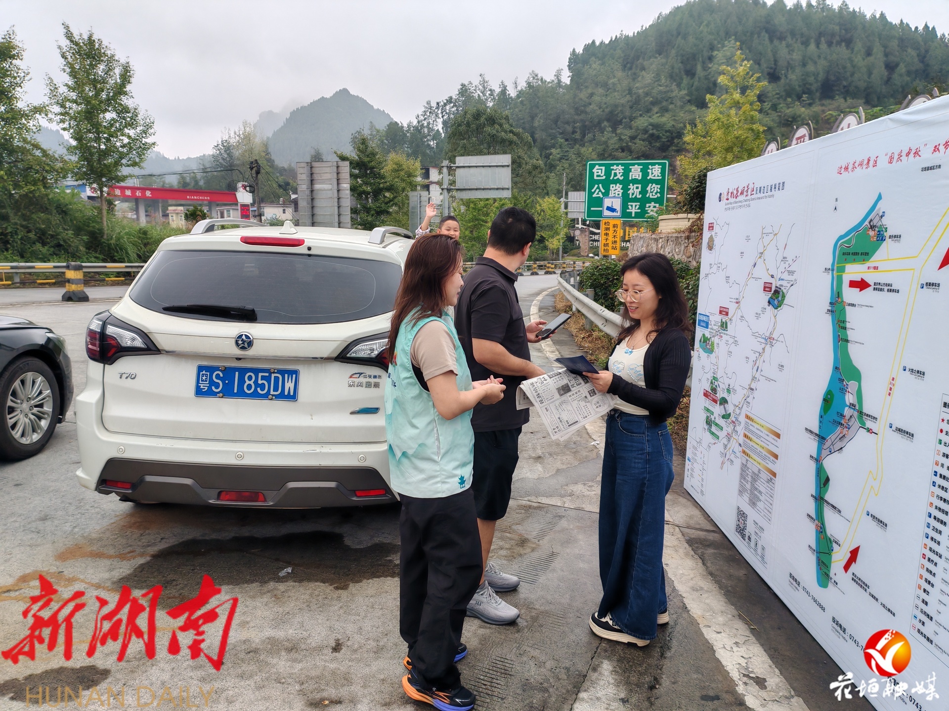 多部门协同发力,全力保障游客体验。花垣公安交警通过“远端分流、近端管控”及“柔性执法”等举措,有效应对车流高峰,确保游客“进得来、出得去”。全县242名志愿者身着“志愿红”,在咨询引导、医疗应急、环境维护等岗位上提供暖心服务,成为各景区一道温馨的风景线。