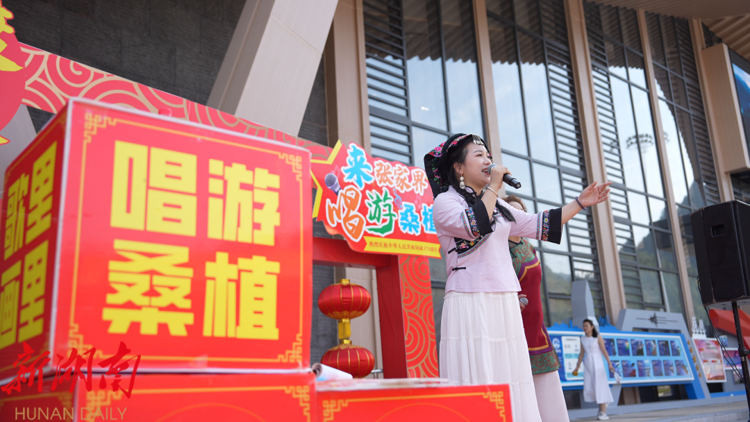 “免费嗦粉区”“趣味投壶”“猜灯谜”的摊位前,孩子们的欢笑不绝于耳。最引人注目的,是那个临时搭建却人气爆棚的民歌舞台,“以歌换礼”,这一巧妙的设计,让国家级非遗项目桑植民歌从静态的“遗产”变成了动态的、可参与的旅途体验。一位来自长沙的游客王先生拿着刚赢得的九天洞门票兴奋地说:“本来只是停下来休息,没想到还能学唱民歌,了解当地文化。这服务区,有味道!”