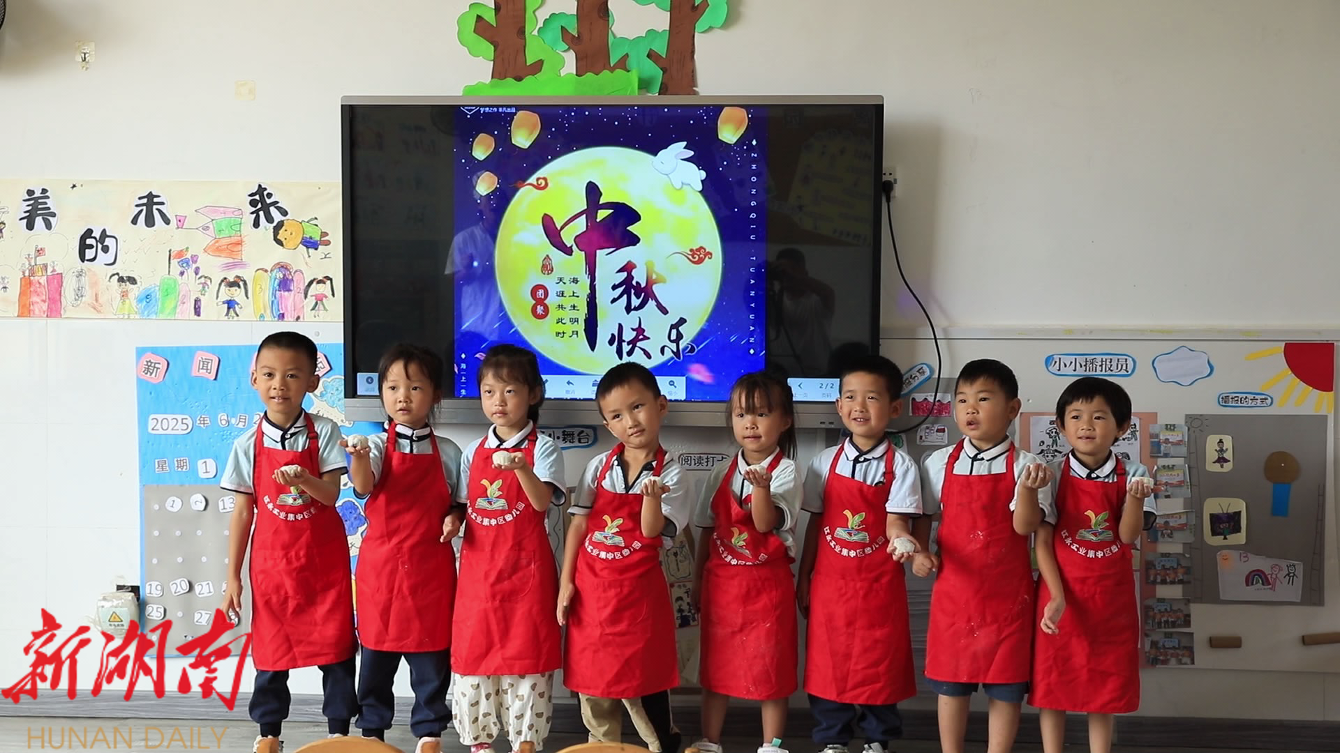 江永县工业区集中区幼儿园小朋友唐诗慧开心地说:“今天我做了一对月饼,一只送给爸爸,一只送给妈妈,还要把灯笼挂在家里,和家人一起过中秋!”