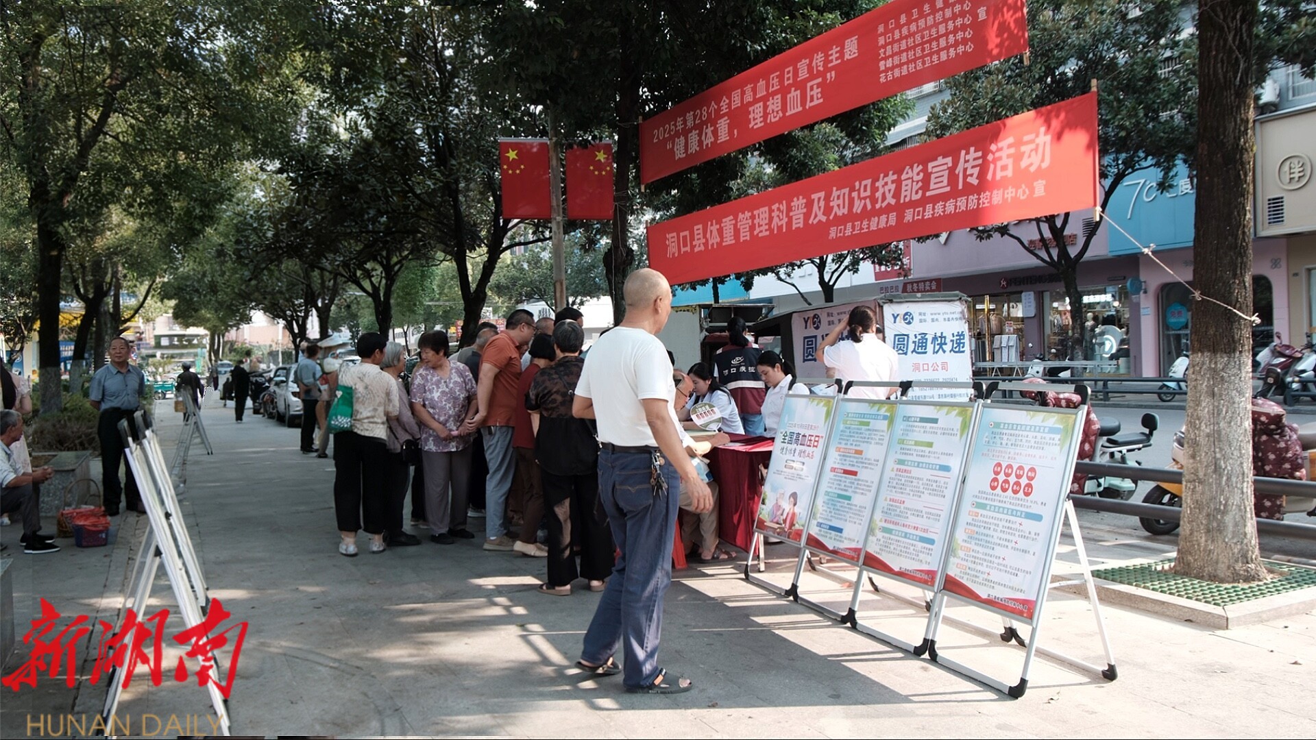 洞口融媒10月9日讯(记者:邓贝乐) 10月9日,县疾控中心联合文昌、雪峰、花古街道社区卫生服务中心,在雪峰广场开展以“健康体重,理想血压”为主题的全国高血压日宣传义诊活动,将专业健康服务送到群众身边。
