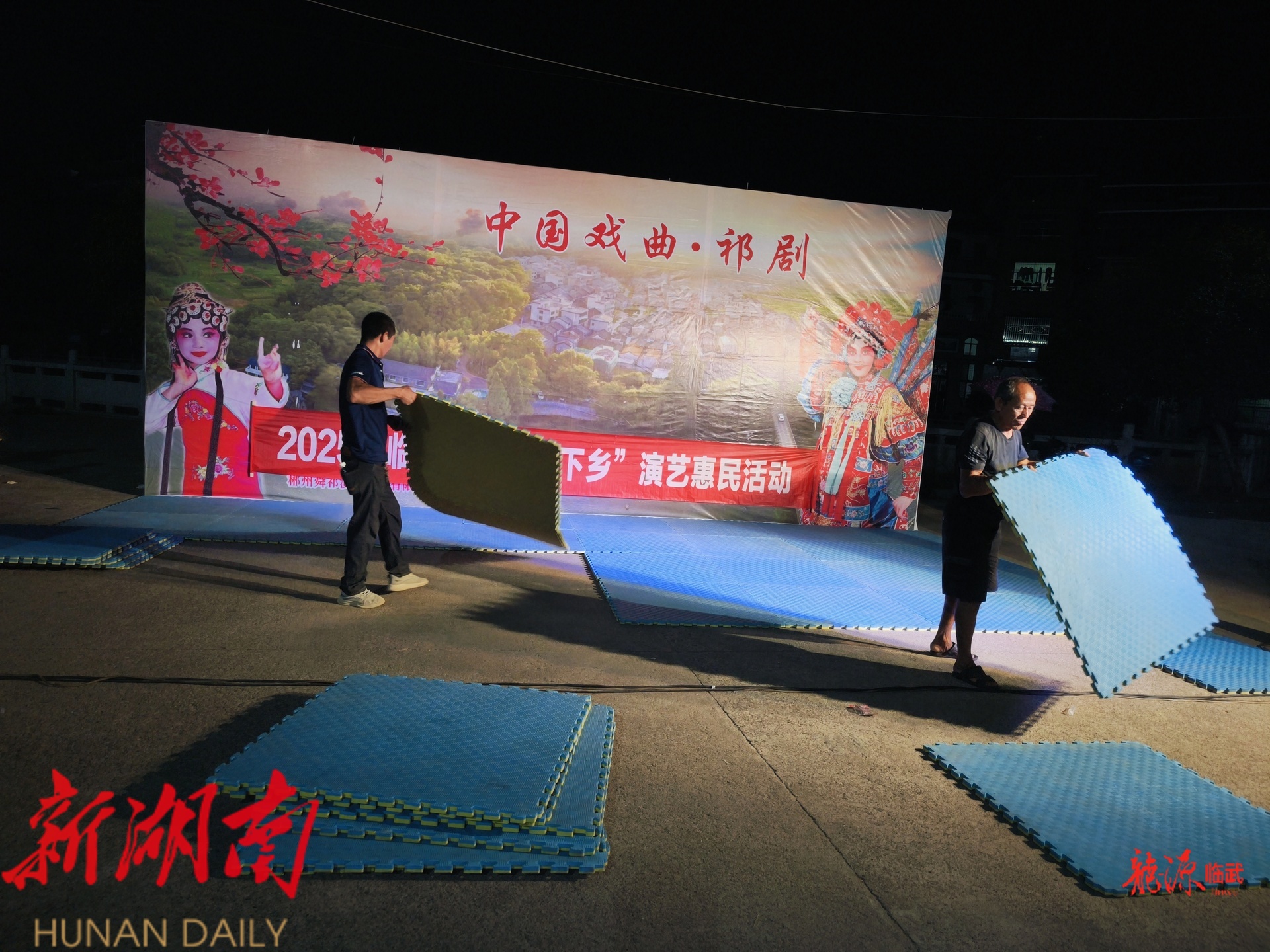 随着最后一段唱腔谢幕,明月已升至中天,人群也在晚风中依依散去,工作人员亦再度忙碌起来,拆解舞台、设备归箱、打包装车……乐此不疲。