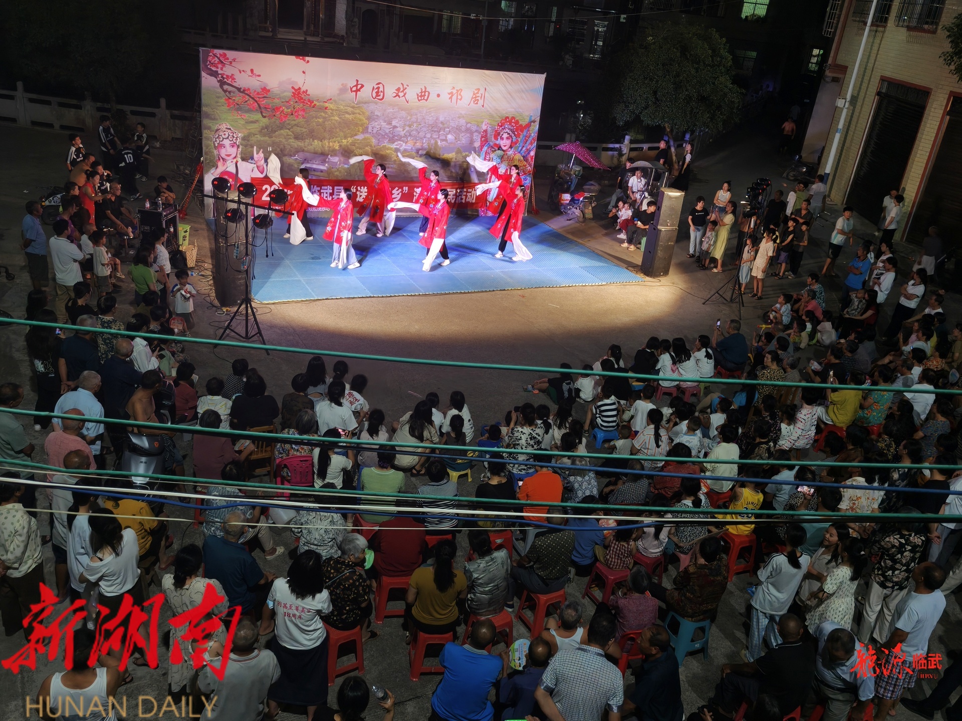 塑料凳是凳,操坪是凳,皮卡车也是凳……排排坐,吃果果,黑压压,挤坐一片,不为别的,只为触摸传统的温度,只为感受戏曲的厚重,艺术咫尺不遥远。