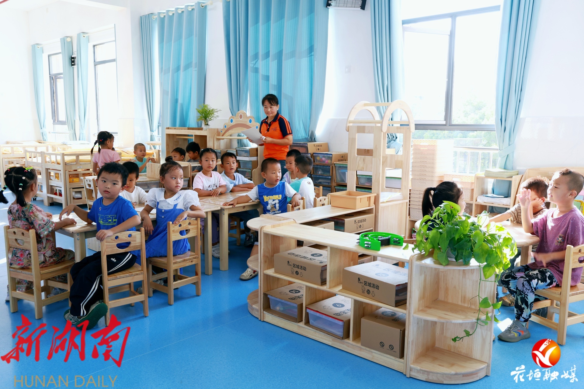 据悉,花垣县第三幼儿园新园按照省一级幼儿园标准建设,规划开设12个教学班。目前共有在园幼儿198名,教职工31名,均具备专业资质。园所环境优美、设施先进、空间简约明亮。教学楼配备标准化活动室,室内绘本区与玩具区色彩明快、布局合理;专业功能区涵盖保健隔离室、多功能会议室及教具资源中心等;后勤区域设有标准化学生厨房。全园实现监控系统全覆盖。