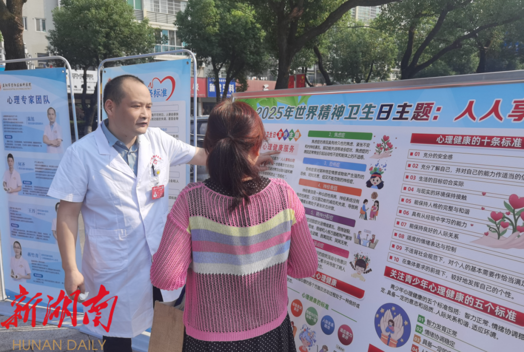 资阳融媒10月10日讯(通讯员:蒋竹青)2025年10月10日是第34个“世界精神卫生日”,今年活动主题为“人人享有心理健康服务”。为深化“精神卫生服务年”工作,资阳区卫健局联合区脑科医院开展系列心理健康服务活动,推动精神卫生知识普及,提升公众心理健康意识。