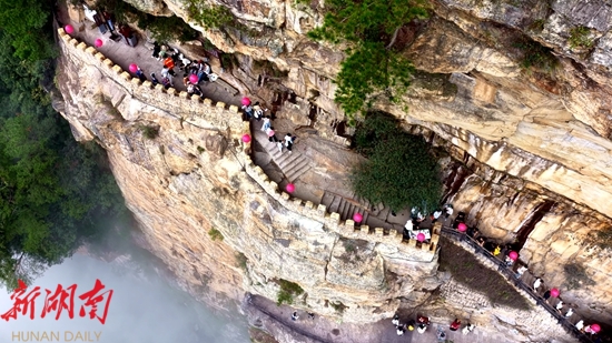 “一夫当关处手扶铁链攀登,天波府前观云海翻涌,这感觉,真像闯进了武侠小说里的秘境!”刚体验完乌龙寨徒步线的广东游客陈先生难掩兴奋。这条9月30日全新开放的精品线路,以“险峻地貌+人文传奇”的双重魅力引爆假期市场。