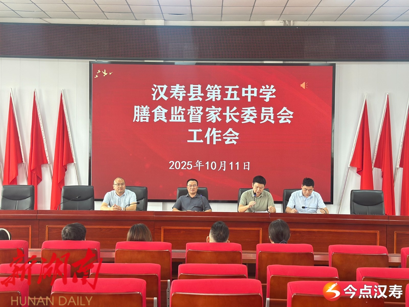 汉寿融媒10月11日讯(通讯员:王源) 为筑牢校园食品安全防线,保障学生膳食健康,10月11日,汉寿五中召开膳食监督家长委员会会议。