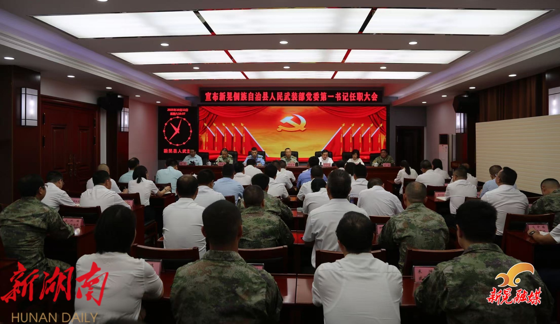 新晃融媒10月11日讯(记者:甘胜男 向勇嘉)10月11日,宣布新晃侗族自治县人民武装部党委第一书记任职大会召开。怀化军分区大校司令员叶红军宣读怀化军分区党委任职通知并讲话,县委书记、县人武部党委第一书记符家盛作表态发言,怀化军分区政治工作处主任罗志成,县领导刘静、李振华、刘浪等参加。