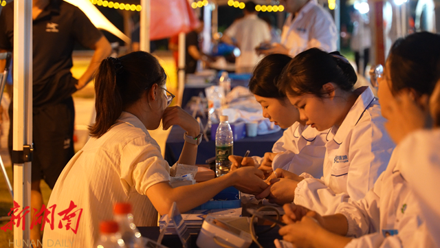 走进龙湾村露营基地草坪,最接地气的当属便民服务与民俗体验区。新化鑫华医院的医护人员为村民免费测血压、血糖,提供健康咨询;法律顾问现场答疑解惑,志愿者义务修剪头发,把贴心服务送到村民身边。而最热闹的当属民俗体验区,新化萸江诗社的书法爱好者们为村民手写“中秋家书”和祝福卡,把对家人的思念与祝福落于笔端。
