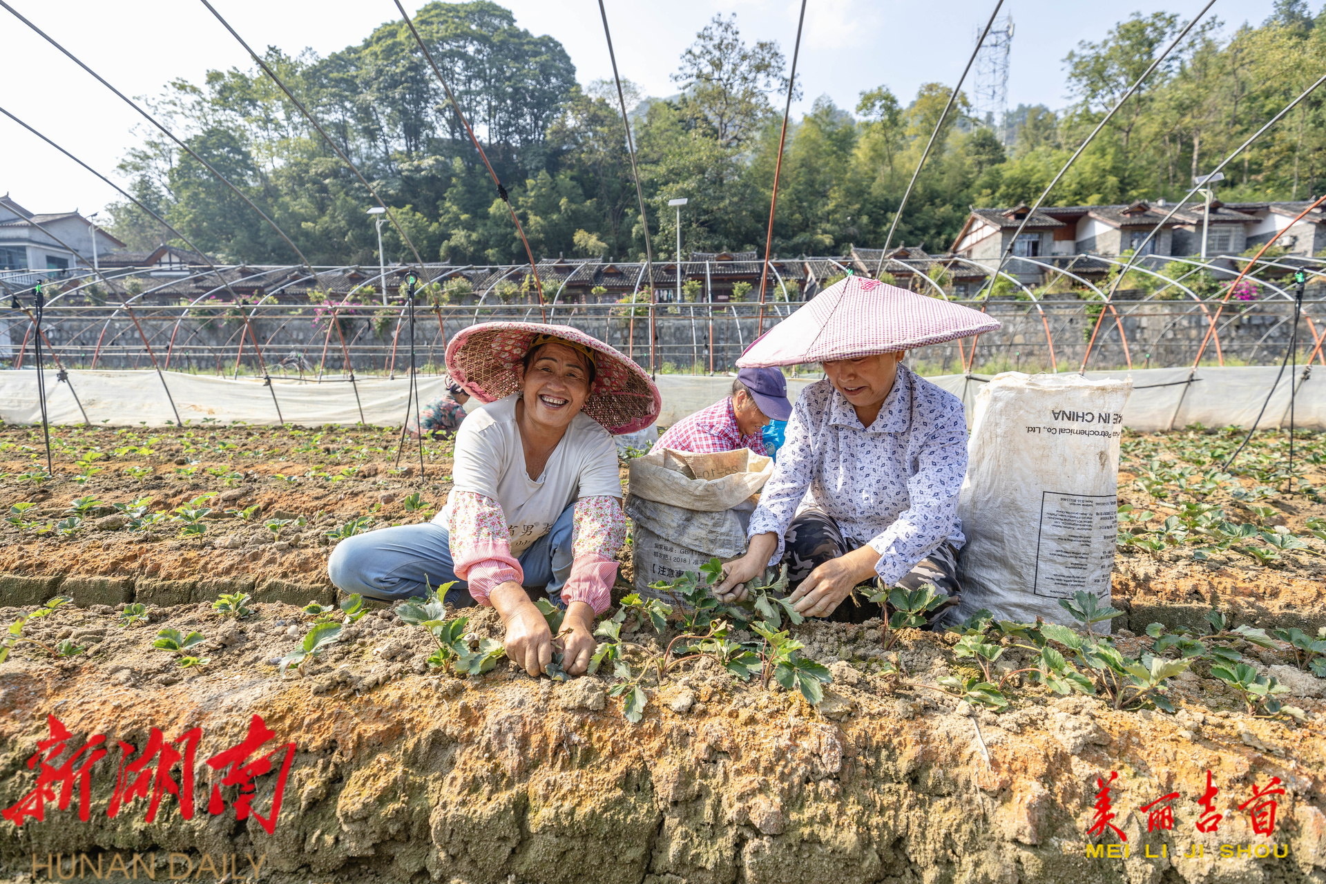 吉首市融媒体中心10月12日讯(全媒体记者 彭璟)2025年10月12日,吉首市矮寨镇坪朗村,村民在对草莓苗进行管护。当前正是草莓生长的关键期,农户通过田间精细化管理,确保草莓丰产,助农增收。