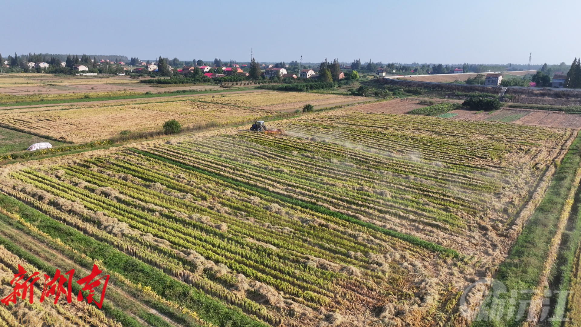 共华镇副镇长郭巍说道:“目前,全镇的中稻大概收割了一半左右,我们会抢抓晴好天气,跟回收厂那边相互协商,全力出动收割秸秆。”