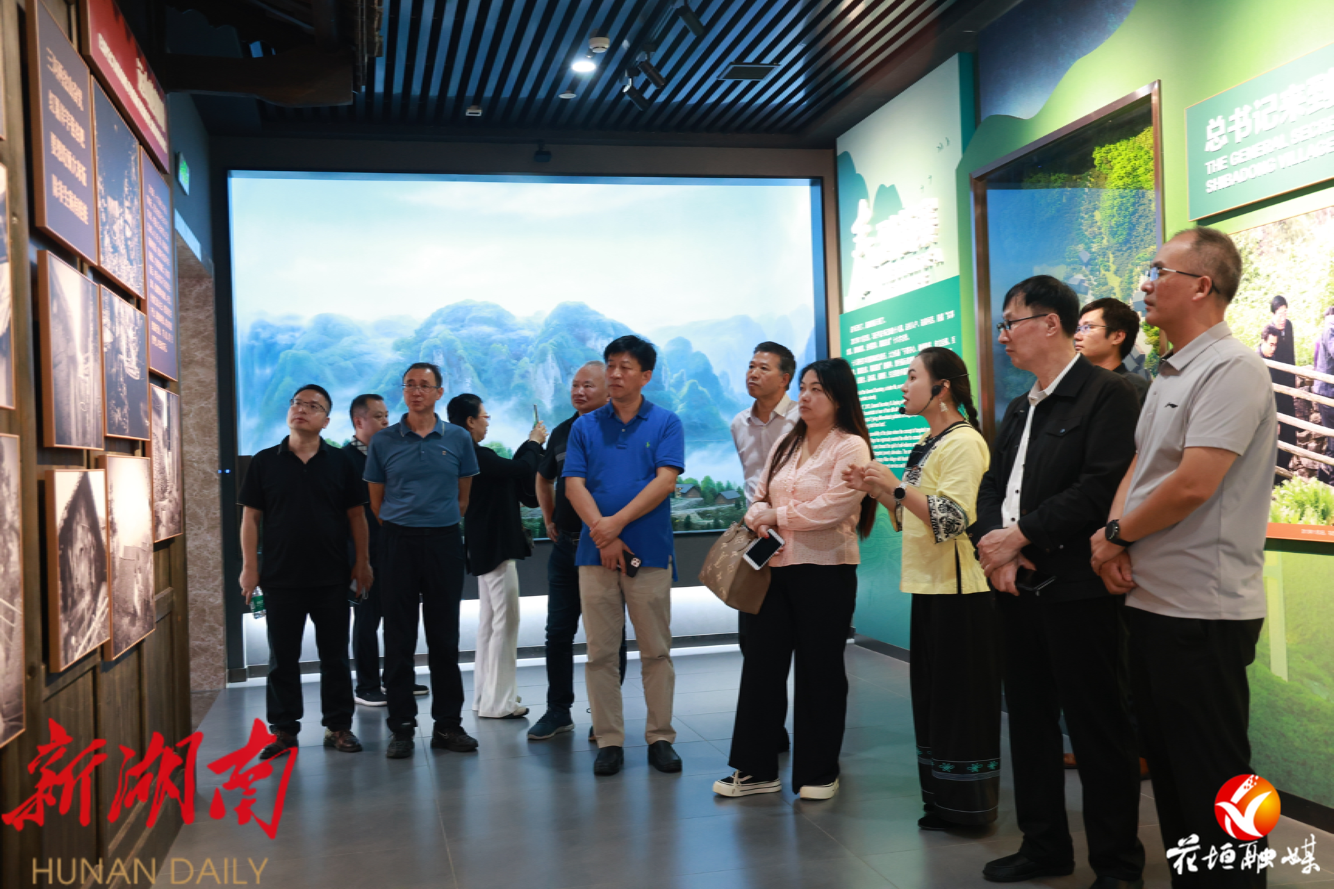 当天下午,考察团抵达精准扶贫首倡地——十八洞村。在精准扶贫主题陈列馆,大家通过图文资料全面了解十八洞村脱贫前后的山乡巨变,深切感受到乡村振兴带来的丰硕成果。在梨子寨,考察团成员沿村道边走边看,在讲解员的讲述下,详细了解当地从深度贫困迈向全面小康的奋斗历程,并就十八洞村产业发展的运营模式、市场销路和助农增收情况进行了深入考察,对十八洞村将生态优势转化为产业优势的发展路径给予了高度评价。