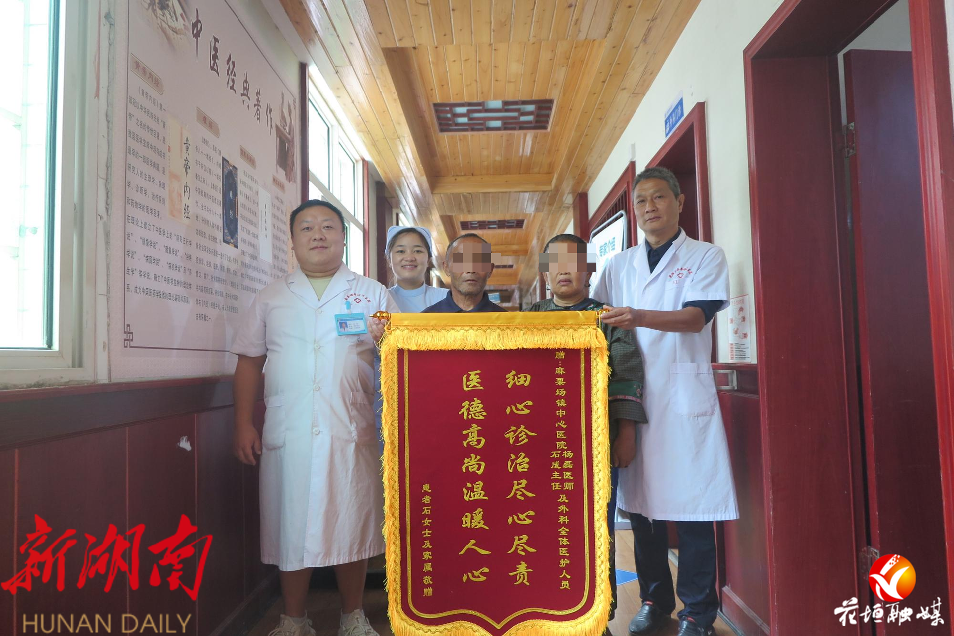 湖南日报·新湖南客户端10月13日讯(通讯员 陈香 杨磊)10月12日,康复出院的石女士及其家属将一面绣着“细心诊治尽心尽责 医德高尚温暖人心”的锦旗,郑重地送到麻栗场镇中心卫生院外科医护人员手中,用直白而朴素的方式,表达着对卫生院全体医护人员的感激之情。