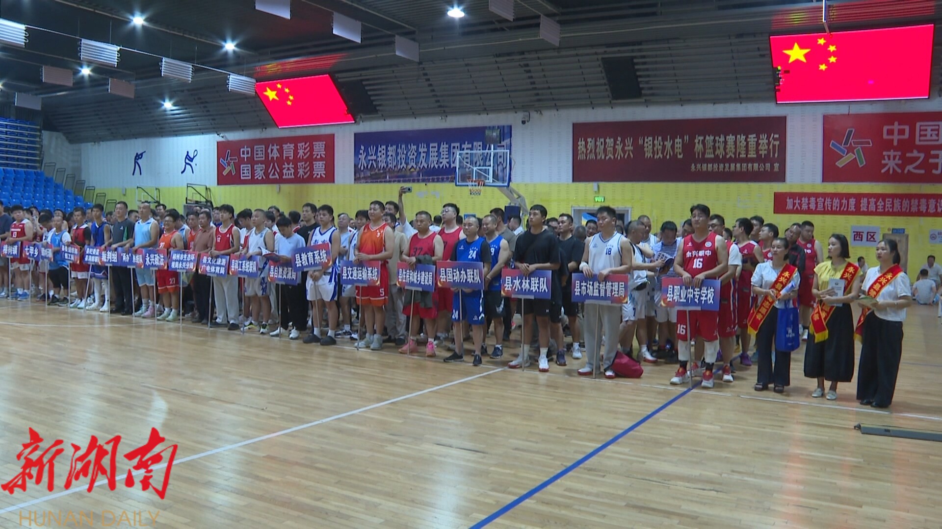 湖南日报·新湖南客户端10月14日讯(通讯员 王勇军)10月13日晚,2025年永兴县“银投水电杯”干部职工男子篮球赛开幕,来自全县的29支篮球队集结赛场,将在接下来的赛程中展开激烈角逐,为荣誉而战。