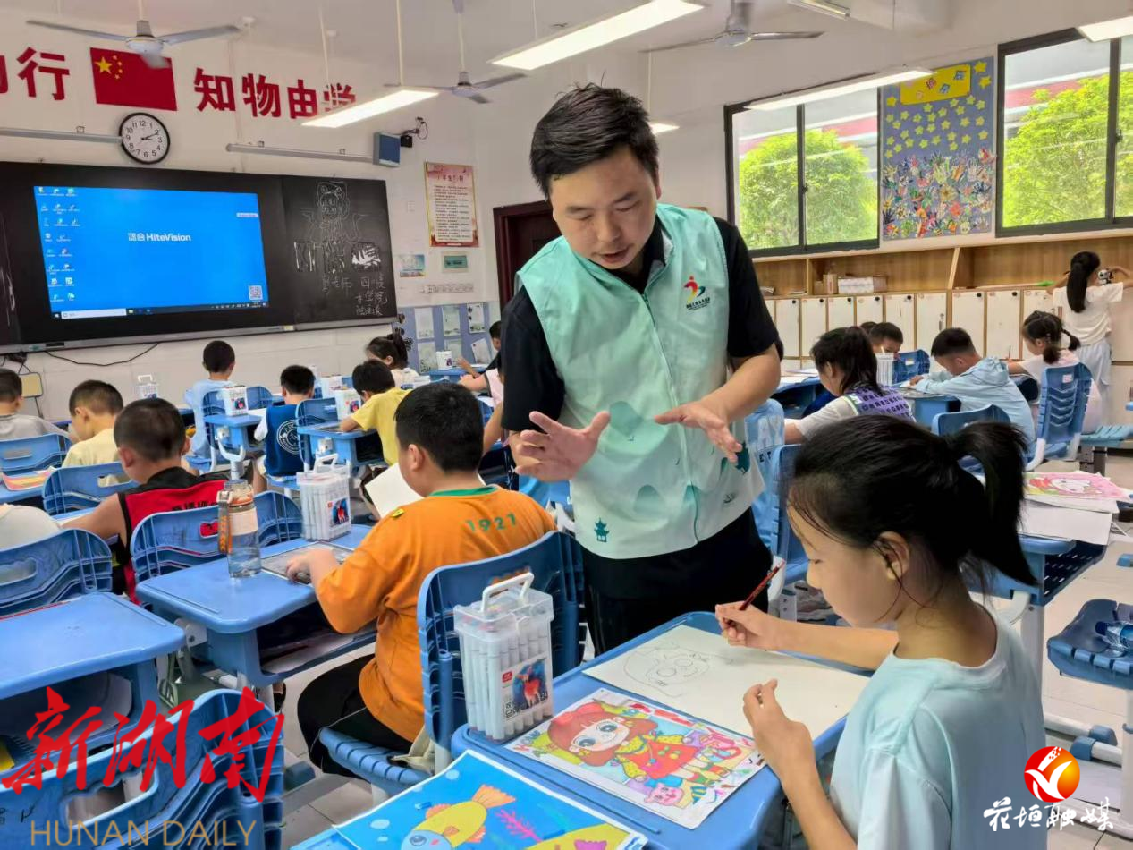 彭方山格外关注偏远山区儿童的美育需求。许多乡镇孩子赶最早的班车前来上课,他从不区分他们来自哪里,却在教学中敏锐地察觉:乡村孩子更腼腆,画面中常流露出对父母的思念、对乡村生活的眷恋。他因材施教,帮每个孩子延展属于自己的创作语言。