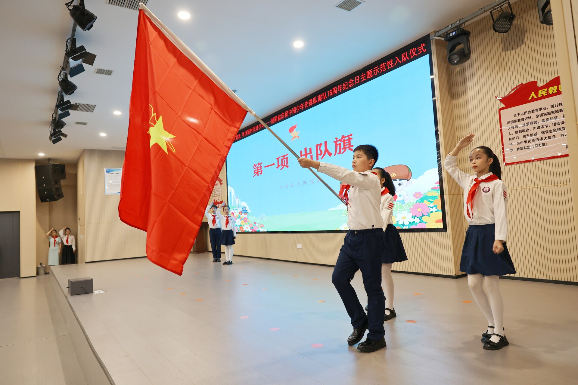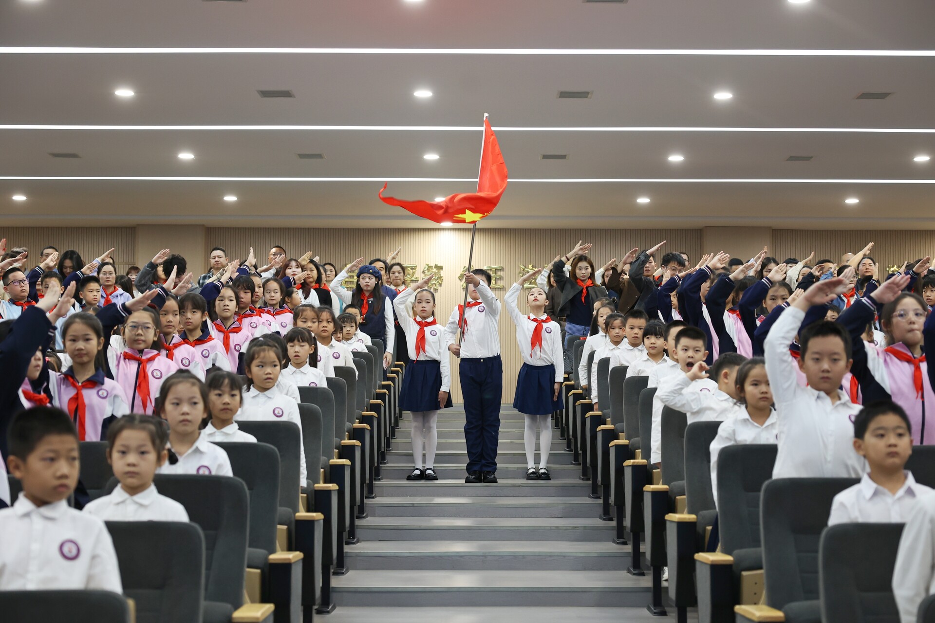 仪式在庄重严肃的氛围中进行。伴随着激昂的出旗曲,旗手迈着坚定有力的步伐,高举中国少年先锋队队旗入场。随后,全体队员齐声高唱《中国少年先锋队队歌》,嘹亮的歌声展现了新时代少先队员的精神风貌。