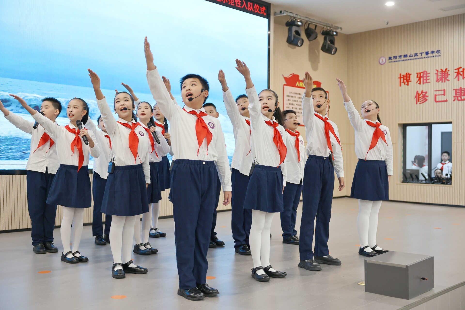 入队仪式上,丁香小学325名新队员整齐列队,高年级队员为他们佩戴上鲜艳的红领巾后,新老队员互敬队礼,并在队旗下举起右拳共同庄严宣誓:“我热爱中国共产党,热爱祖国,热爱人民,好好学习,好好锻炼,准备着:为共产主义事业贡献力量!”誓言回荡在校园,彰显着新队员们的坚定信念与责任担当。
