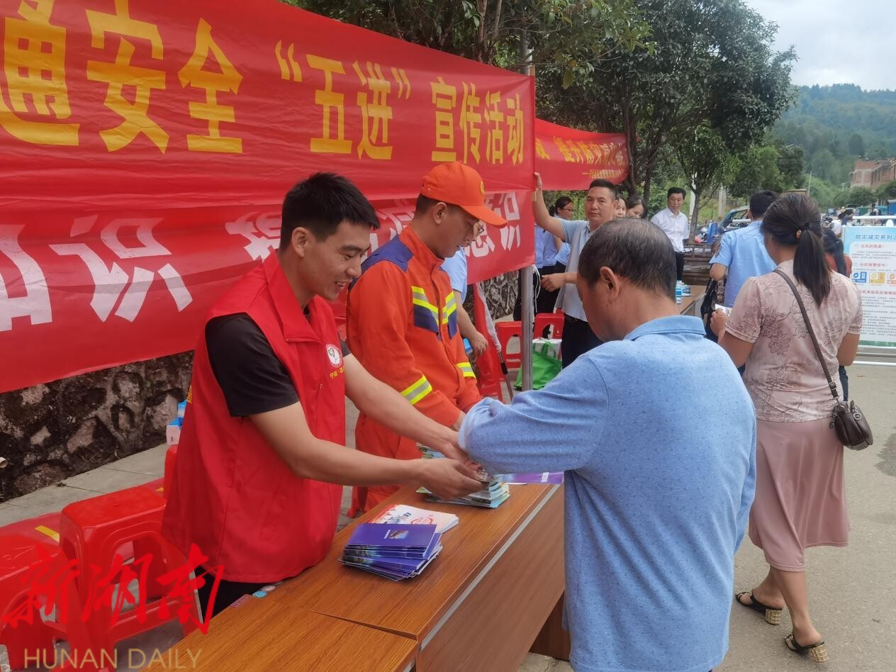 湖南日报·新湖南客户端10月15日讯( 通讯员 蒋勇) 近日,宁远县九疑瑶族乡开展道路交通安全“五进 ”宣传活动, 提升农村群众交通安全意识。