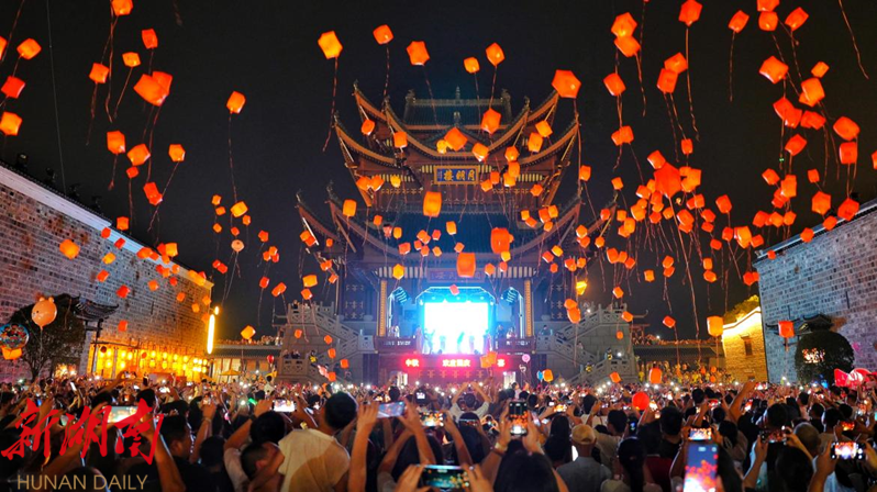 “我们延长营业时间至深夜23时,还结合‘湘超’赛事推出了折扣套餐,客流量比平时多了3倍。”景区一家餐饮店的老板笑着说,不少游客专门来尝擂茶、甜酒、麻辣烫等益阳特色美食,感受“舌尖上的益阳”。据了解,明清古巷联动近60余家商户延长营业时间,带动夜间消费持续升温。“白天在古巷打卡拍照,晚上和朋友逛特色小吃,许愿放飞孔明灯,这个节日过得很有中秋味。”高三的黎嘉怡和同学组团来玩,他们的微信朋友圈里,满是古巷夜景与孔明灯放飞现场的照片。