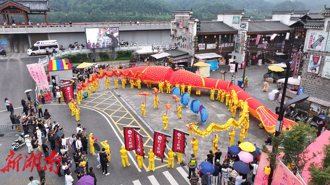 “‘虾子起拱’是益阳的非物质文化遗产,是一项集手工艺、舞蹈、力量与祈福于一体的传统民俗。”明清古巷营销副总经理徐跃楚介绍,这个假期,景区每天开展30多场演出,“非遗花鼓”传统花鼓戏展演、“声动古巷”主题晚会、“凤凰飞天”月圆点灯表演秀、“集章有礼”非遗探索之旅等活动持续上演,为游客打造一场集视觉、听觉于一体的文旅盛宴。