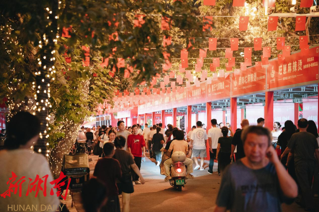 非遗国潮吸引了目光,而地道美食则留住了脚步。这个假期,古巷不远处的大码头记忆开展了益阳麻辣烫特色美食季活动,精选全市30家益阳知名麻辣烫品牌,为市民游客打造一个麻辣烫美食集结区。记者在现场看到,各摊位前排起长龙,食客络绎不绝。这份持续8天的美食盛宴,成功点燃市民参与热情,让明清古巷成为众多市民的假期首选。