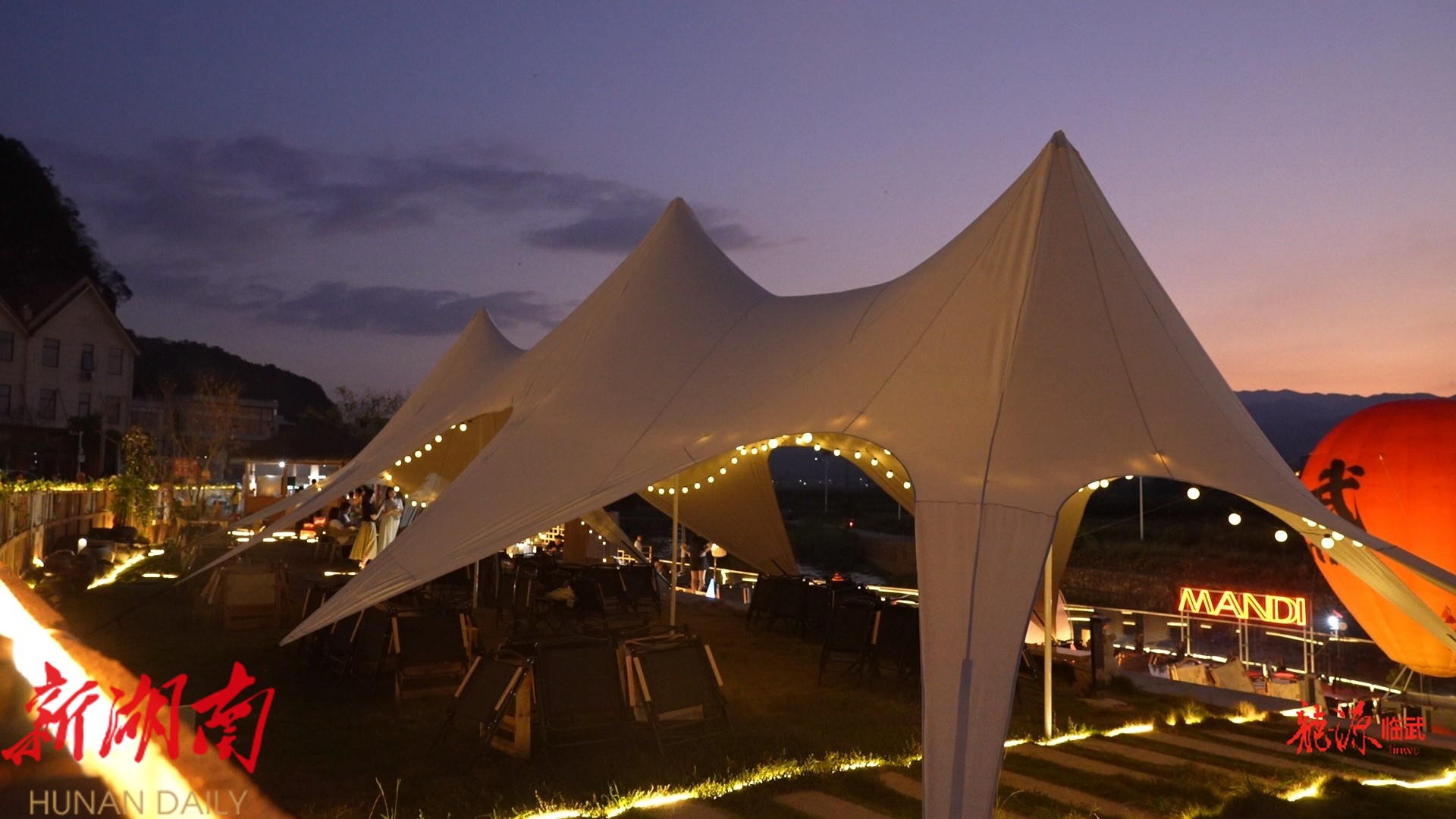 “微电影城以深厚的‘龙文化’底蕴和微电影产业为特色,自带流量与话题热度,为我们打造差异化文旅体验提供了绝佳‘背景板’。同时,当时推出的招商政策极具吸引力,尤其在鼓励文旅新业态方面给予了大力支持,包括租金优惠、宣传推广等,这让我们更有信心将创新的想法落地。”为精准抓住年轻群体和家庭客群的“微度假”需求,何玲与合伙人从场景到产品都下足了功夫。它不做单纯的餐厅或酒吧,而是把“精致露营”与“音乐餐吧”深度绑定,打造出“场景+体验+社交”的复合模式:每晚有专业歌手驻唱,定期办主题篝火晚会,高颜值环境适合拍照,互动游戏拉近彼此距离,让游客在休闲中重新认识临武文旅。