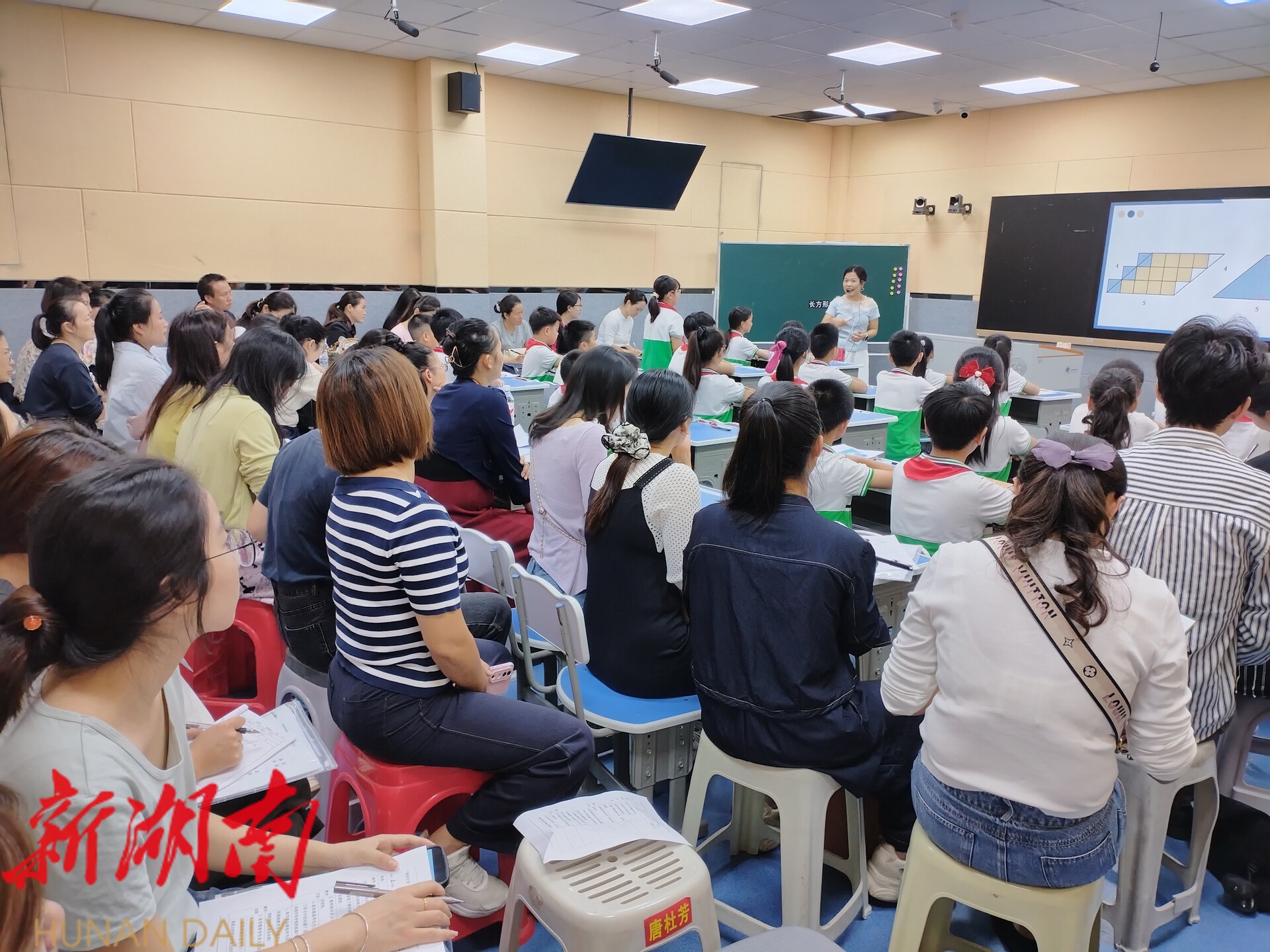 活动采用“示范+研讨+共建”模式,通过专家讲座、分组研磨、同课异构等环节,引导教师深入理解大单元教学的设计逻辑与实施策略。活动中,多位名师亲自执教示范课,围绕“图形与几何”核心内容展开。通过设置真实情境任务和设计结构化活动,名师们生动地展现大单元教学的整体性与素养导向。课后,名师结合教学实践进行说课与反思,为参训教师提供可借鉴、可操作的教学路径。现场研讨氛围浓厚,思维火花不断碰撞,有效促进专业成长。