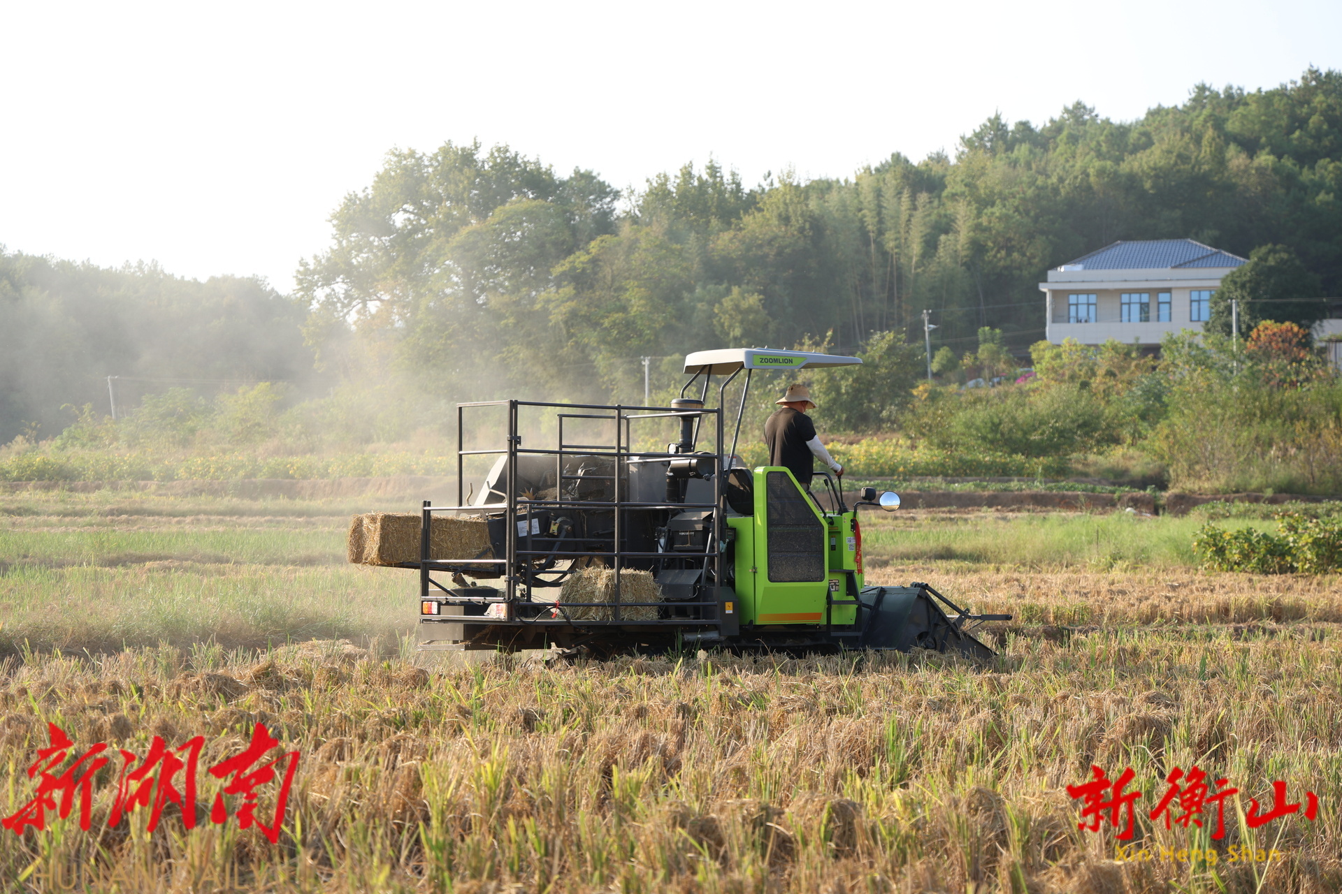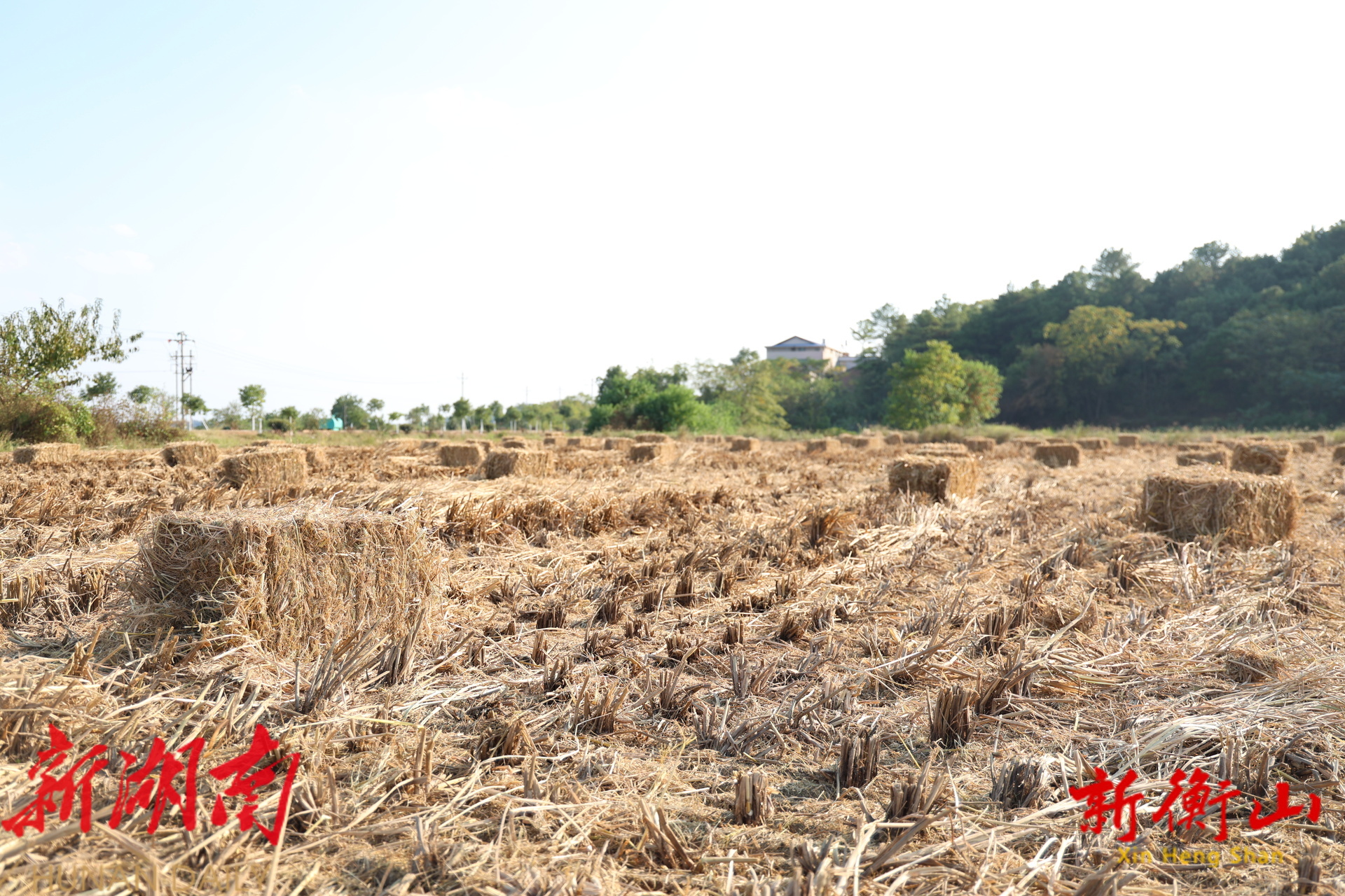 在衡山县萱洲镇依田村的农田里,一台秸秆打捆机来回穿梭,将水稻秸秆不断“吞”进,随后,一个个紧实规整的“小方块”就被“吐”出来,错落有致地排放在田间,等待装车拉运。