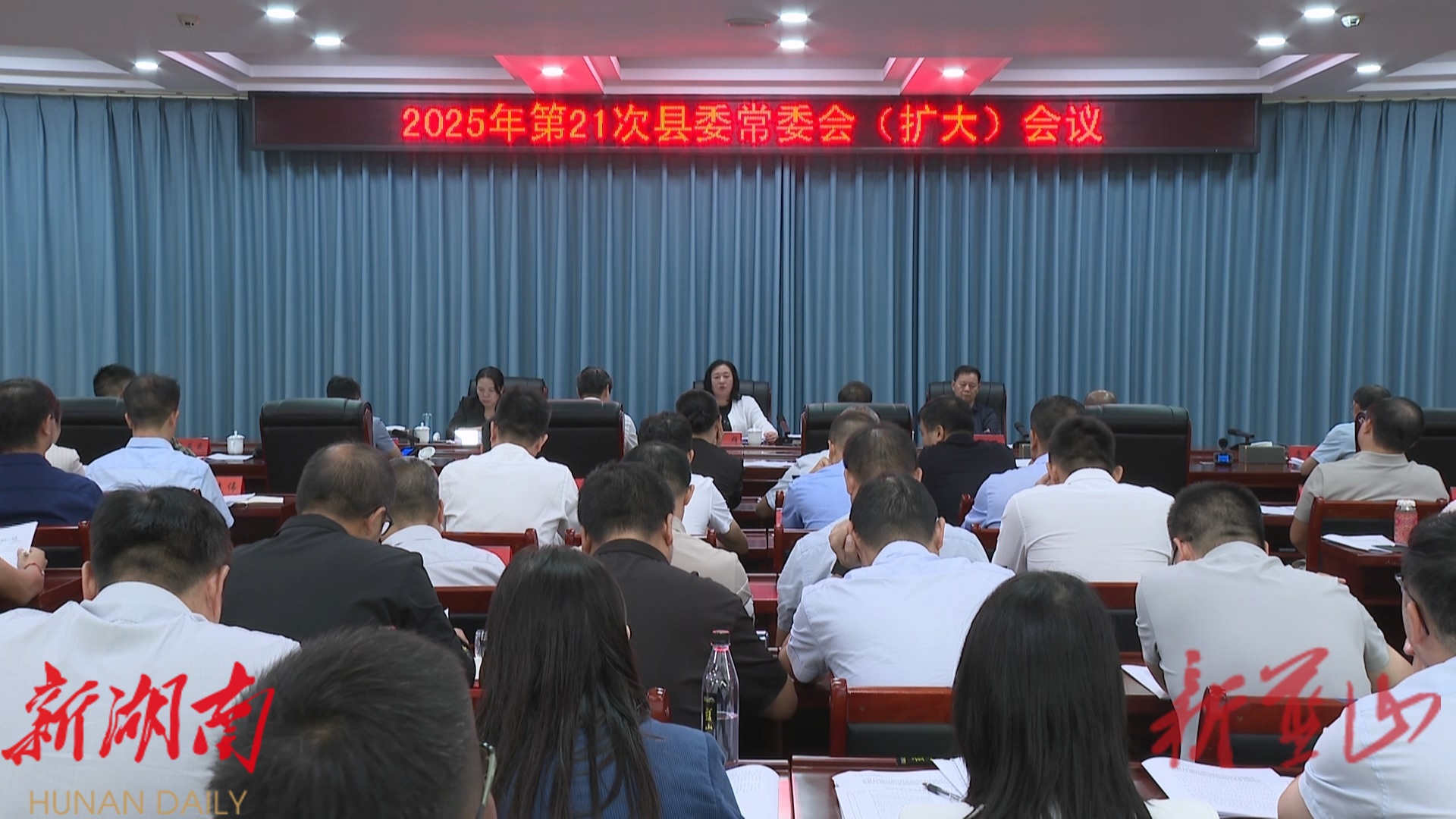 新蓝山客户端10月15日讯 (通讯员 段祎 唐淑云)10月15日上午,受县委书记龙向洋委托,县委副书记、县长邓群主持召开2025年第21次县委常委会(扩大)会议。会议传达学习习近平总书记近期重要讲话、重要指示、贺信、回信和重要文章精神;省委常委会、市委常委会会议统战工作议题主要精神等。通报2025年9月份县委常委会、县重点工作明确事项落实情况及2025年国庆假期期间工作情况;落实第一政治要件,对候鸟等野生动物保护工作进行分析研判;审议《蓝山县国民经济和社会发展第十五个五年规划基本思路》。