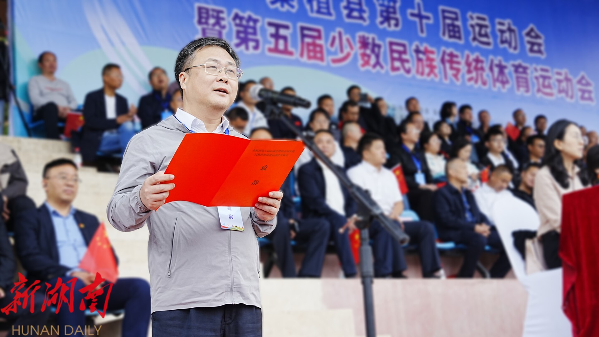 曹飞说,桑植作为贺龙元帅故乡,赓续红色体育血脉,近年来体育事业蓬勃发展,越来越多高水平运动员走出桑植、走向赛场,已累计获得省级比赛奖牌76枚,体育正成为推介桑植的“代言词”;文化体育中心成为城市新地标,体育健身器材实现乡村全覆盖,人均体育场地面积从2021年的2.03平方米增长至2.88平方米,体育正成为提升群众健康水平的“助推器”;在国家体育总局支持下,先后举办各类国家级、省级体育赛事近百场,实现了“月月有赛事、周周有活动、项项都精彩”,体育正成为经济发展的“新引擎”。本届运动会是贯彻全民健身战略、激发全县奋斗精神的重要实践。桑植将以此次盛会为契机,深化体旅融合,坚定不移地走好“体育强县、赛事活县、体旅兴县”的高质量发展之路。