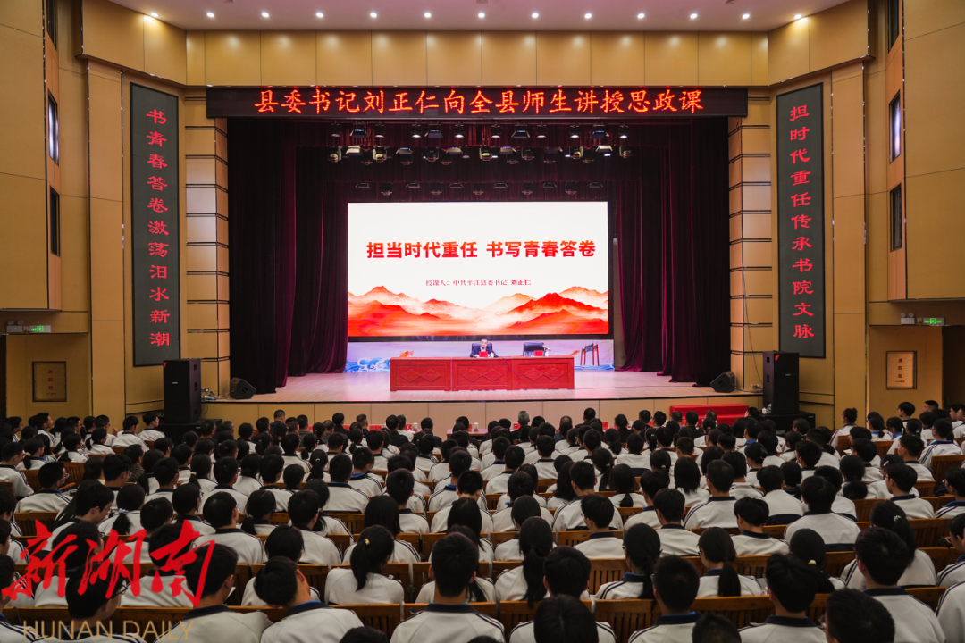 平江融媒10月14日讯(记者 雷怡慧)10月14日,县委书记刘正仁到平江县第一中学为全县师生讲授思政课,鼓励广大教师坚守教育初心,践行育人使命,努力培养更多担当民族复兴大任的时代新人;勉励学子们以梦为马、不负韶华,努力成为德才兼备的栋梁之才 。思政课由 县委副书记、统战部部长鲁勇主持。