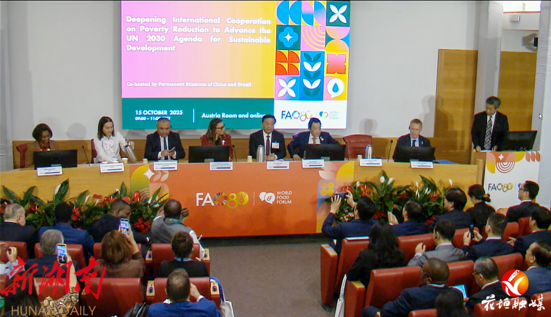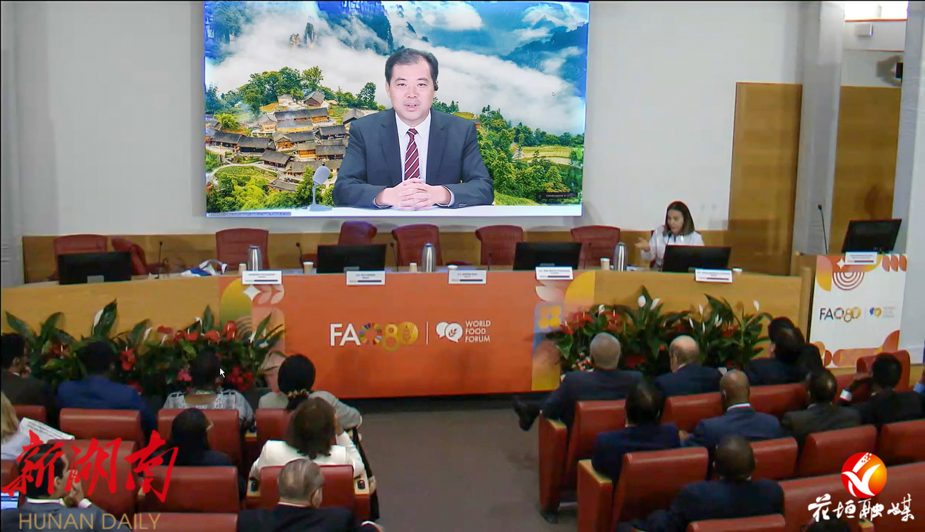 湖南日报·新湖南客户端10月16日讯(通讯员 宋显金)10月15日,2025年世界粮食论坛减贫主题边会采用线上线下相结合形式,在联合国粮食及农业组织总部举行,联合国粮农组织总干事屈冬玉、巴西总统夫人罗桑热拉、中国农业农村部部长韩俊等出席开幕式并致辞。花垣县委书记王京海应邀参加线上会议并作主题发言。