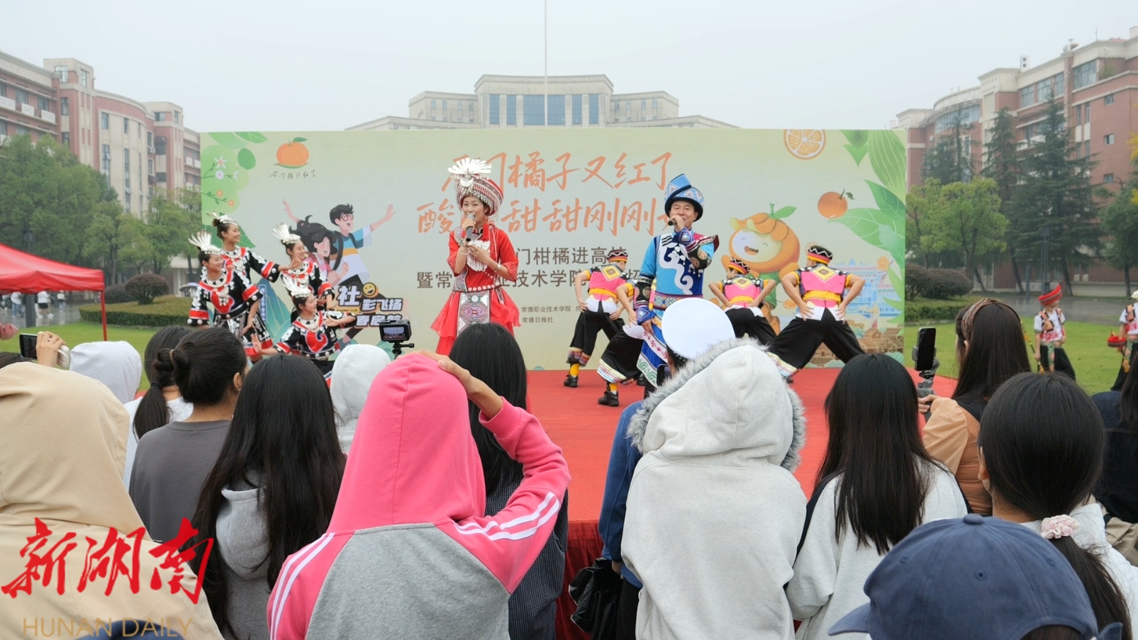 “我刚刚看了那边的表演,他们的服饰我也很喜欢,橘子也非常好吃。”常德职业技术学院学生彭宣齐说道。