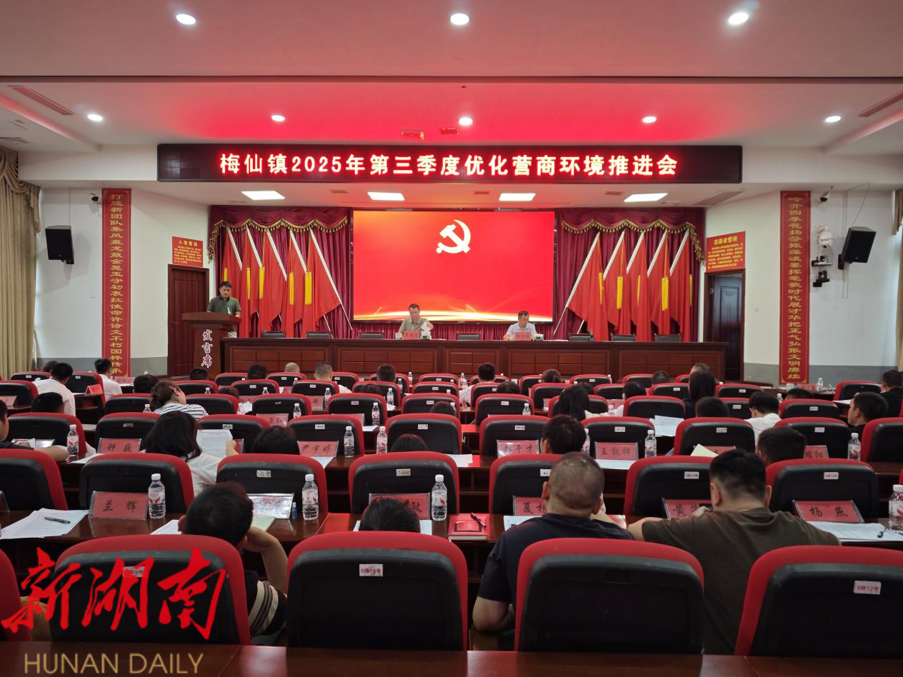 梅仙镇党政办讯(通讯员 曾隆根 )为持续深化营商环境建设,近日,梅仙镇召开2025年第三季度优化营商环境推进会,镇党政班子成员、各部门负责人及辖区企业代表参会,共商优化举措,共谋发展新篇。