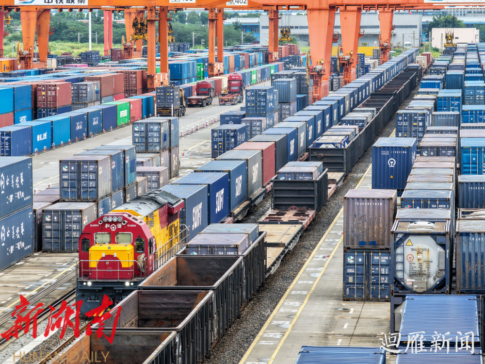 2025年9月8日,满载“重庆造”汽车的中欧班列(成渝)在重庆团结村中心站等待发车(无人机照片)。