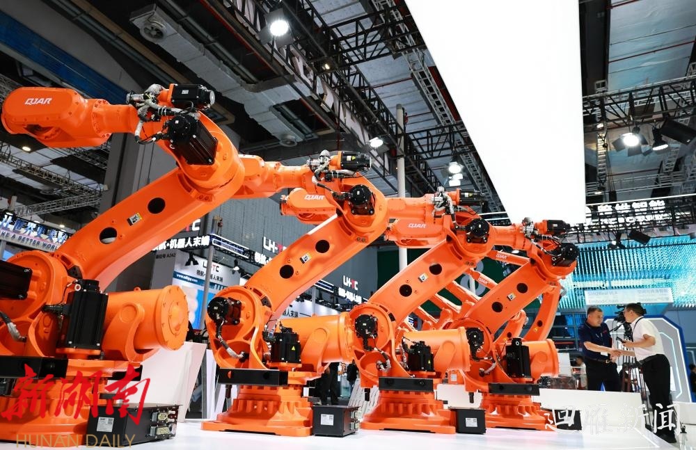 这是2025年9月23日在上海举行的第25届中国国际工业博览会上拍摄的一组大型工业机器人产品。