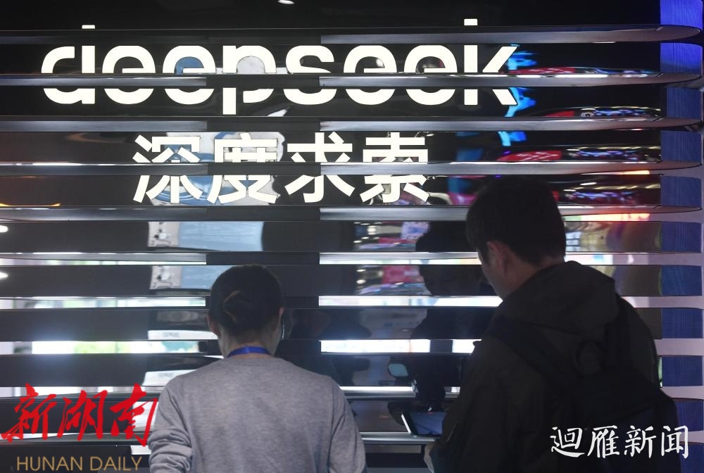 2025年5月4日,人们在浙江省杭州市文三数字生活街区的AI黑科技市集上体验DeepSeek的人工智能大模型。