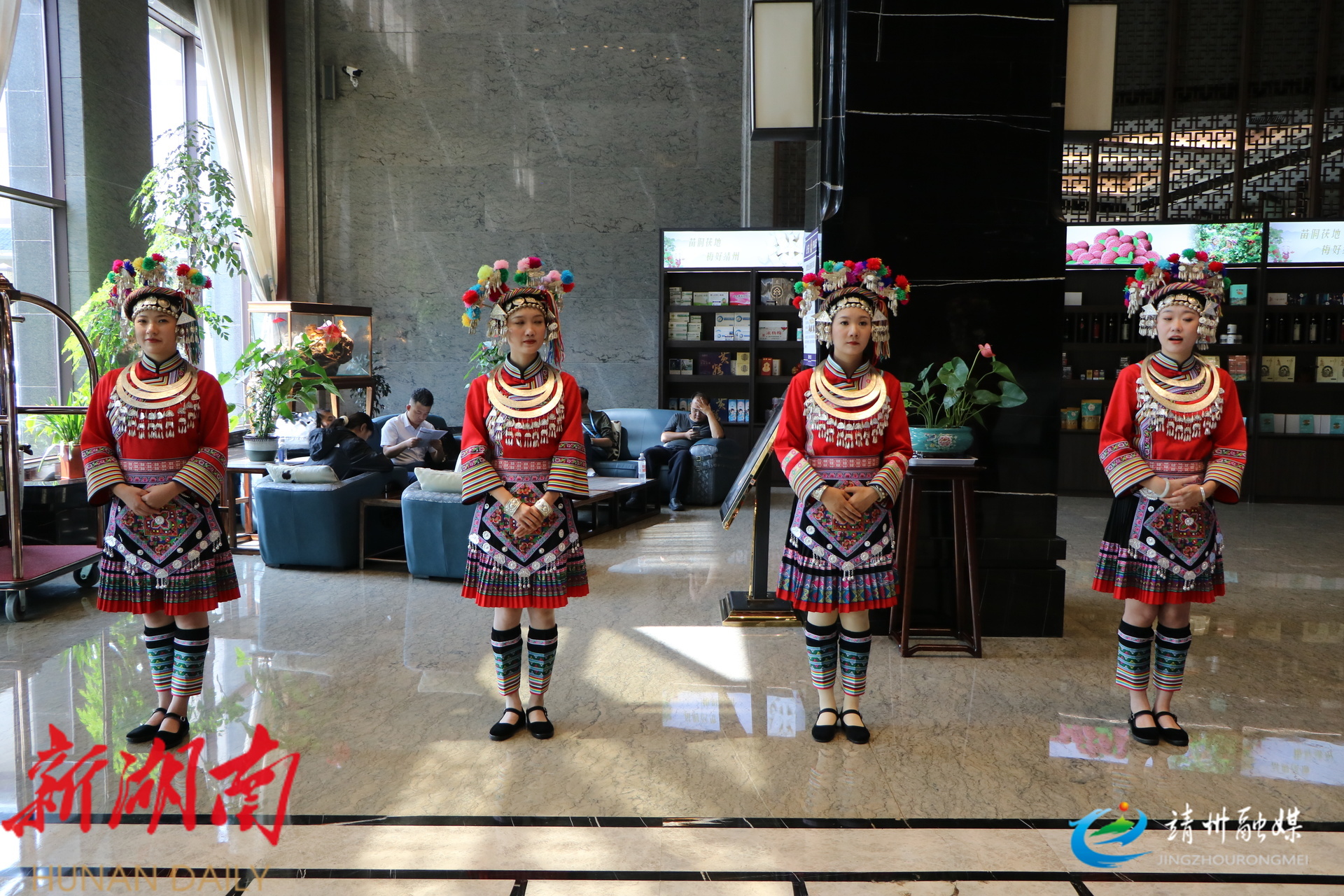 穿着少数民族服饰的迎宾人员(夏源懋 摄)