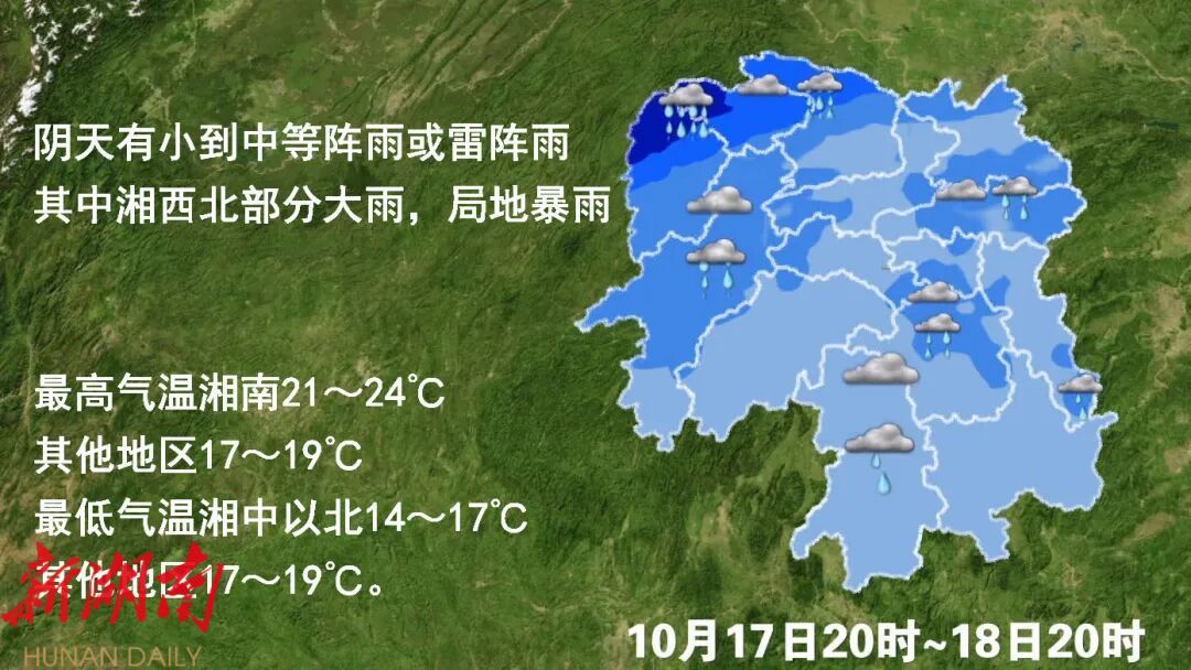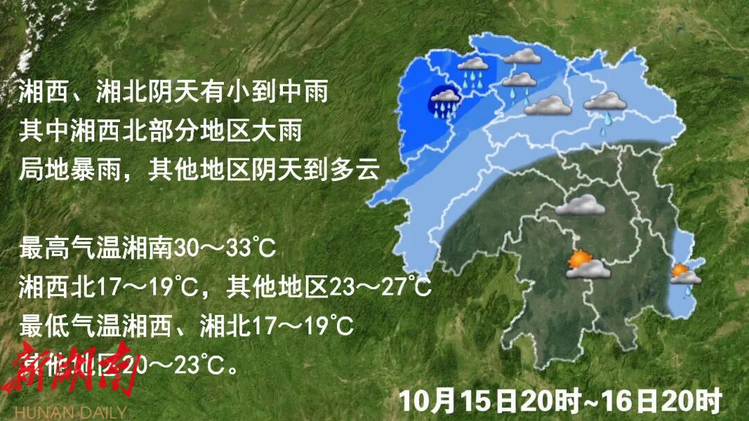 1、防范今日晚至17日白天湘西北局地较强降雨可能诱发的次生灾害风险,关注阴雨天气对秋收秋种、交通出行等的影响,提前做好晚稻收晒。